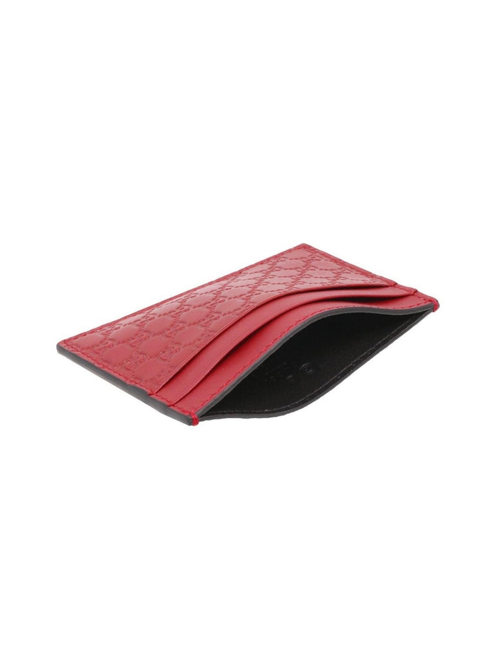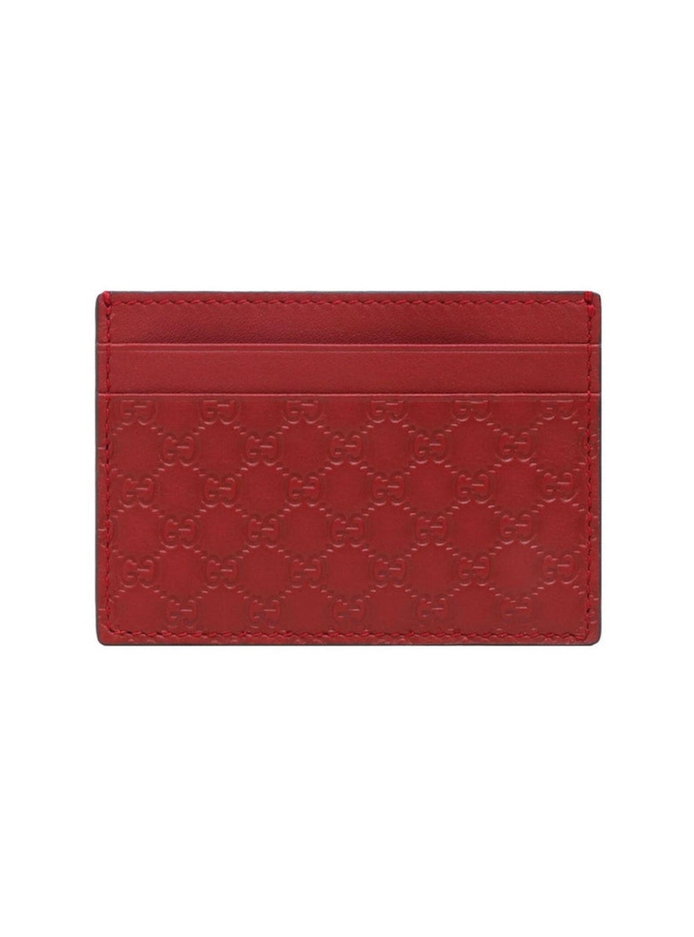 Gucci Portacarte in pelle rossa con motivo GG in rilievo. Caratterizzato da cinque fessure portacarte e dal logo GG all-over.