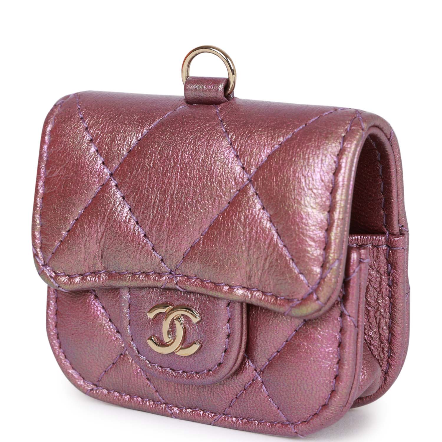 Chanel AirPods Pro Case Purple Iridescent Lambskin Light Gold Hardware
