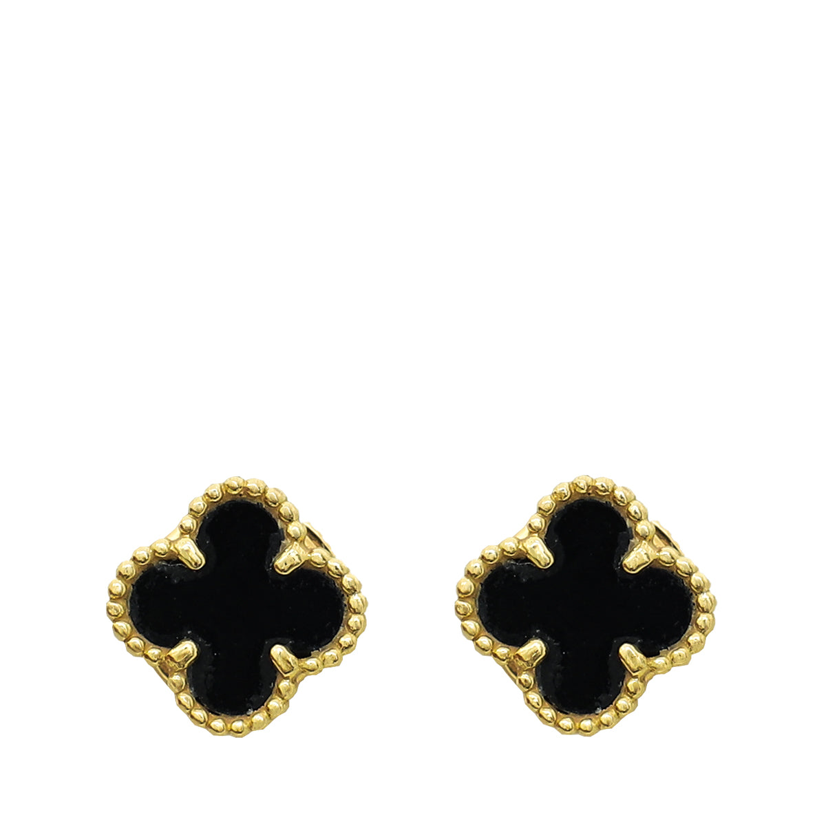 Van Cleef & Arpels 18K Yellow Gold Onyx Sweet Alhambra Stud Earrings
