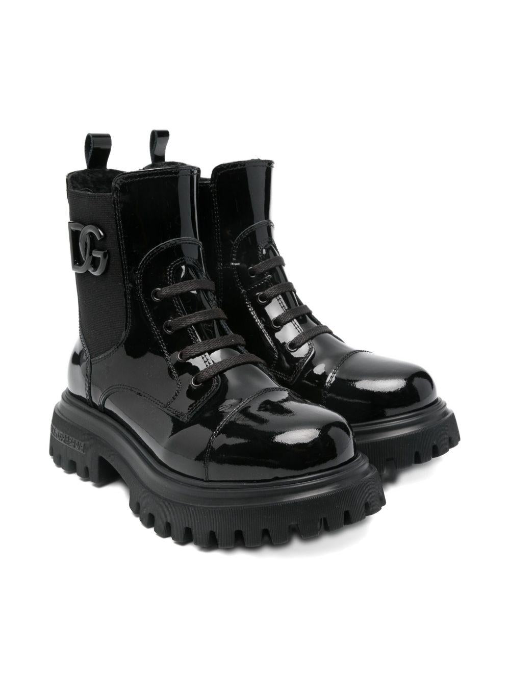 Il prodotto Stivali per bambina Dolce & Gabbana Kids neri con placca con logo è disponibile sullo store online RubinoKids.com. Realizzato in pelle lucida 70%, tessuto 30%. Il prodotto presenta un colore nero, finitura lucida, pelle, chiusura con lacci, placca con logo, suola chunky in gomma. Varie taglie a catalogo, appartiene alla collezione Dolce & Gabbana Kids Autunno/Inverno 2025 ed è disponibile con consegna in 24/48h per l'Italia.