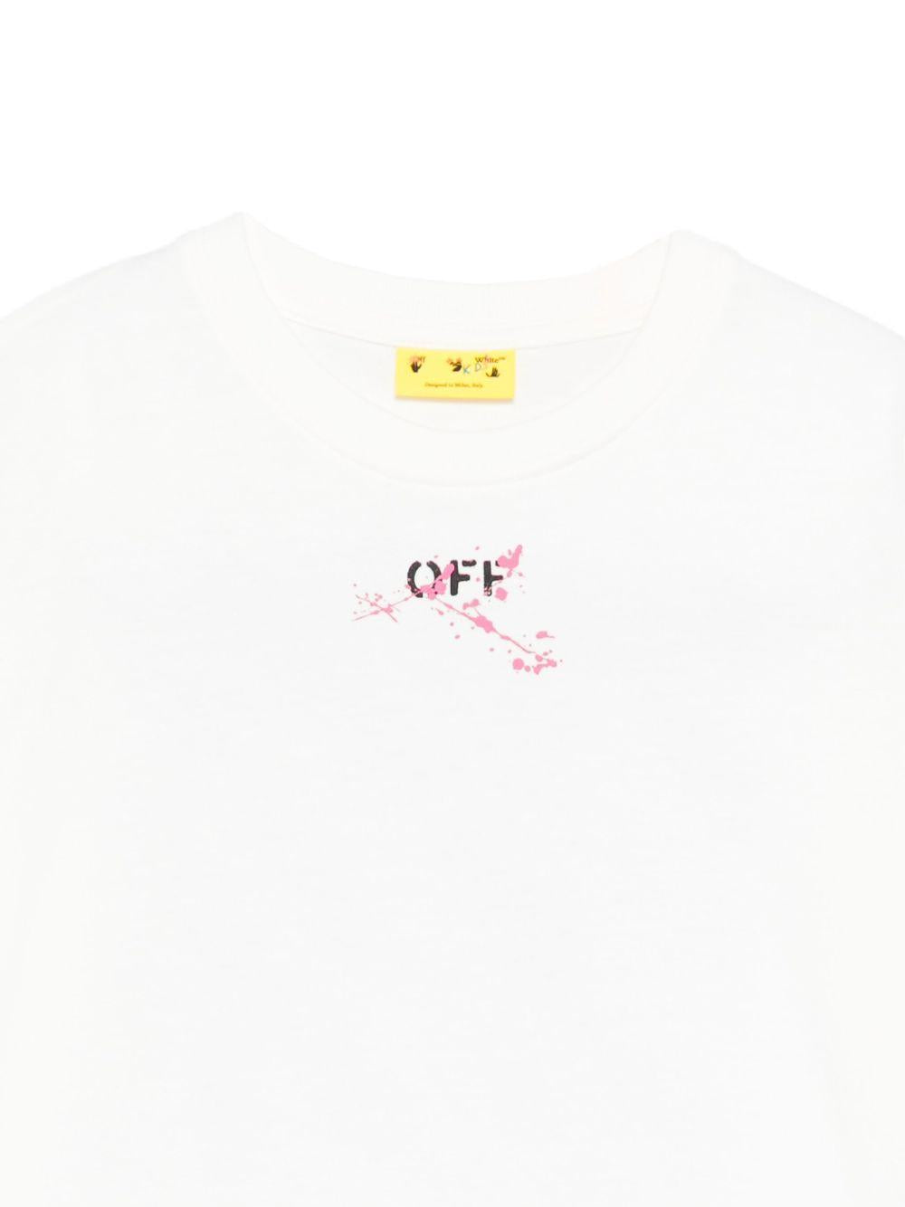 T-shirt per bambina Off-White Kids bianca con effetto vernice e logo stampato