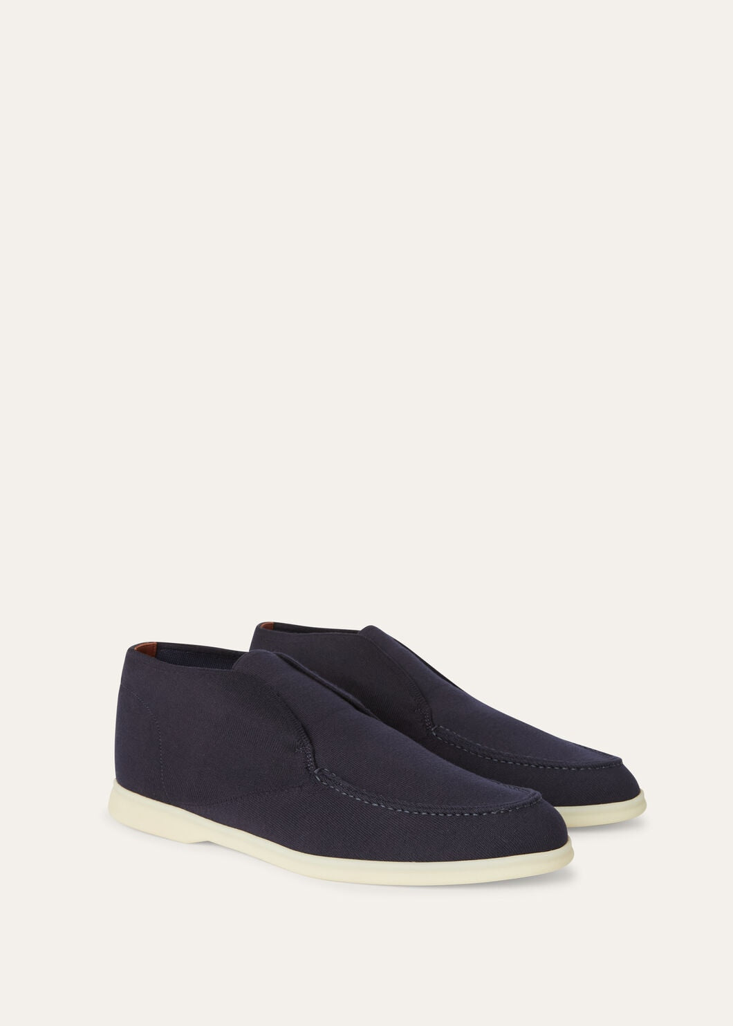 Il design rilassato e informale è arricchito da una suola in gomma con iconici gommini logati LP, che assicura flessibilità e grip su diverse superfici. Il dettaglio distintivo è il tallone ripiegabile in stile sabot, che permette di indossarli anche come slip-on per un comfort ancora maggiore.
