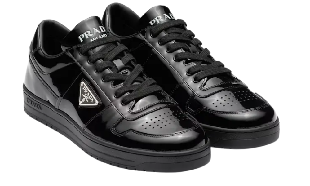 Downtown sneakers stand out for their versatile and contemporary style inspired by vintage, sporty designs. Patent leather details elevate the iconic silhouette, characterized by perforated leather uppers and decorated with the enameled metal triangle logo.