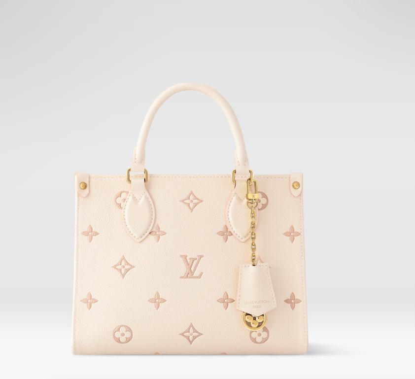 La borsa OnTheGo PM, in pelle Monogram Empreinte, rivisita il classico motivo della Maison in una raffinata versione dai profili tono su tono. L'accessorio si distingue per le parti metalliche dorate, come la catenella del charm amovibile, e per l'elegante fodera in tessuto a righe. La creazione, perfetta dalla mattina alla sera, si indossa anche a spalla o a tracolla.