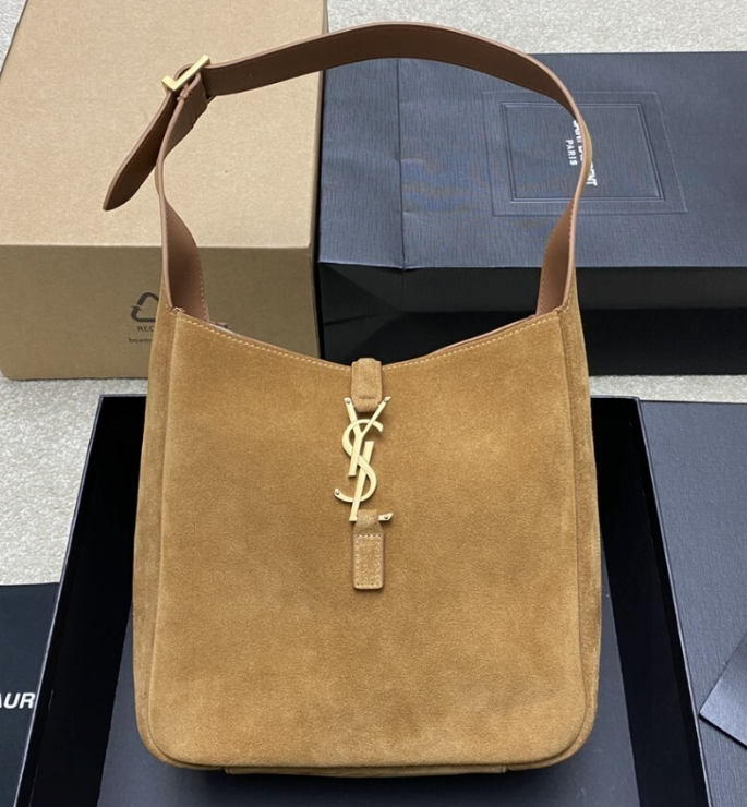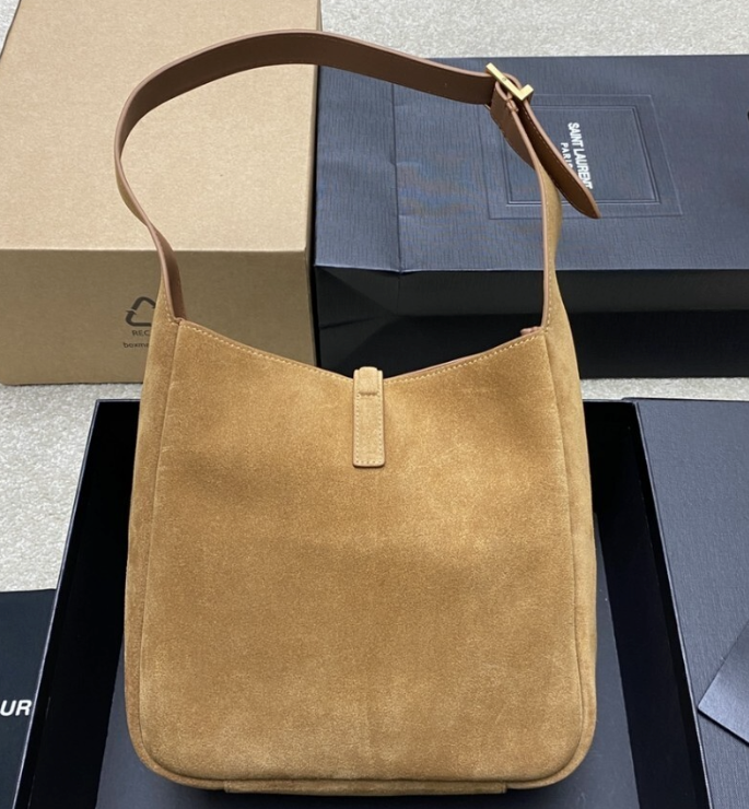 La versione small della LE 5 À 7, con chiusura a linguetta in pelle decorata con la CASSANDRE, foderata in pelle scamosciata tono su tono.