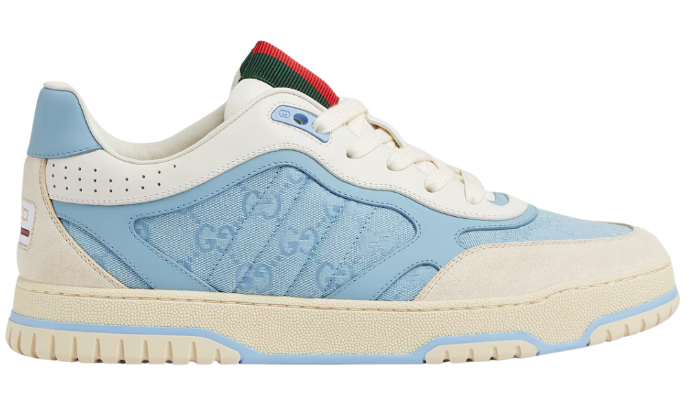 In the Spring Summer 2025 collection, the Re-Web sneaker returns in new colorways from a mix of GG canvas and leather. The modern pastel tones, fit for the coming season, appear alongside heritage details from the GG motif to the Web stripe.