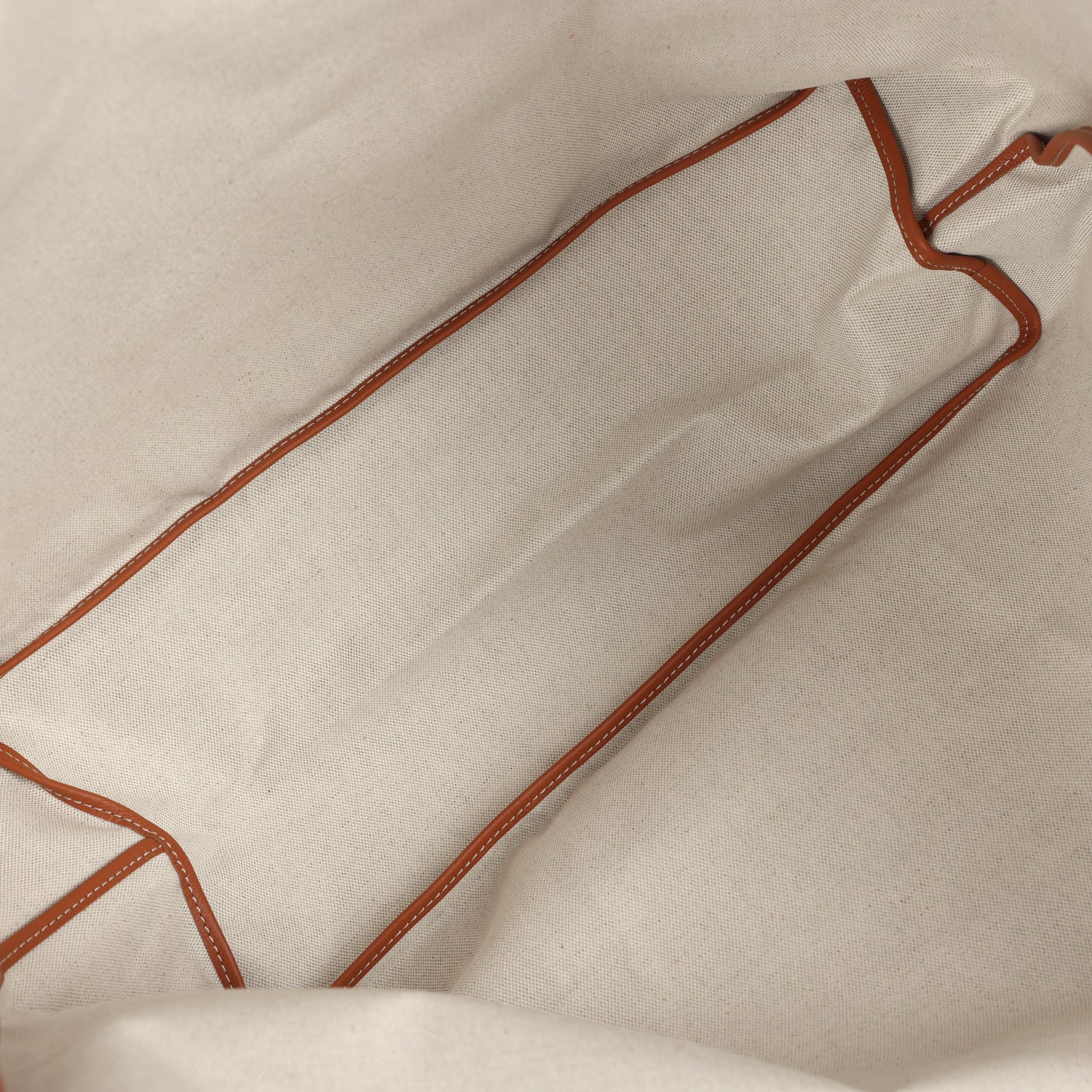 This Saint Louis GM tote is in black Goyardine coated canvas and tan Chevroches calfskin leather with palladium hardware, contrast stitching, two flat top handles, and has a matching detachable button closure wallet.