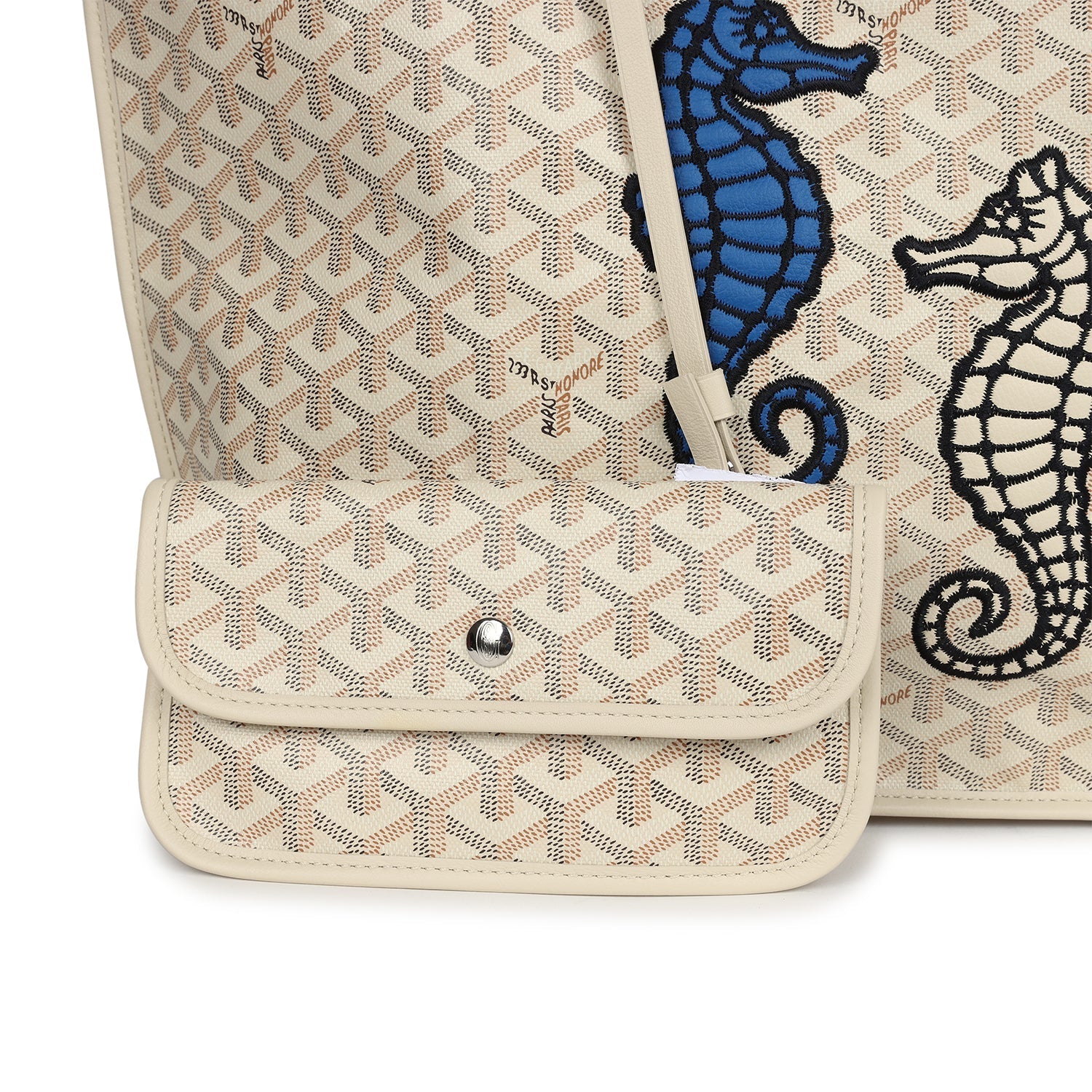 Goyard Goyardine Sand Anjou PM Embroidered Seahorse Bag Palladium Hardware