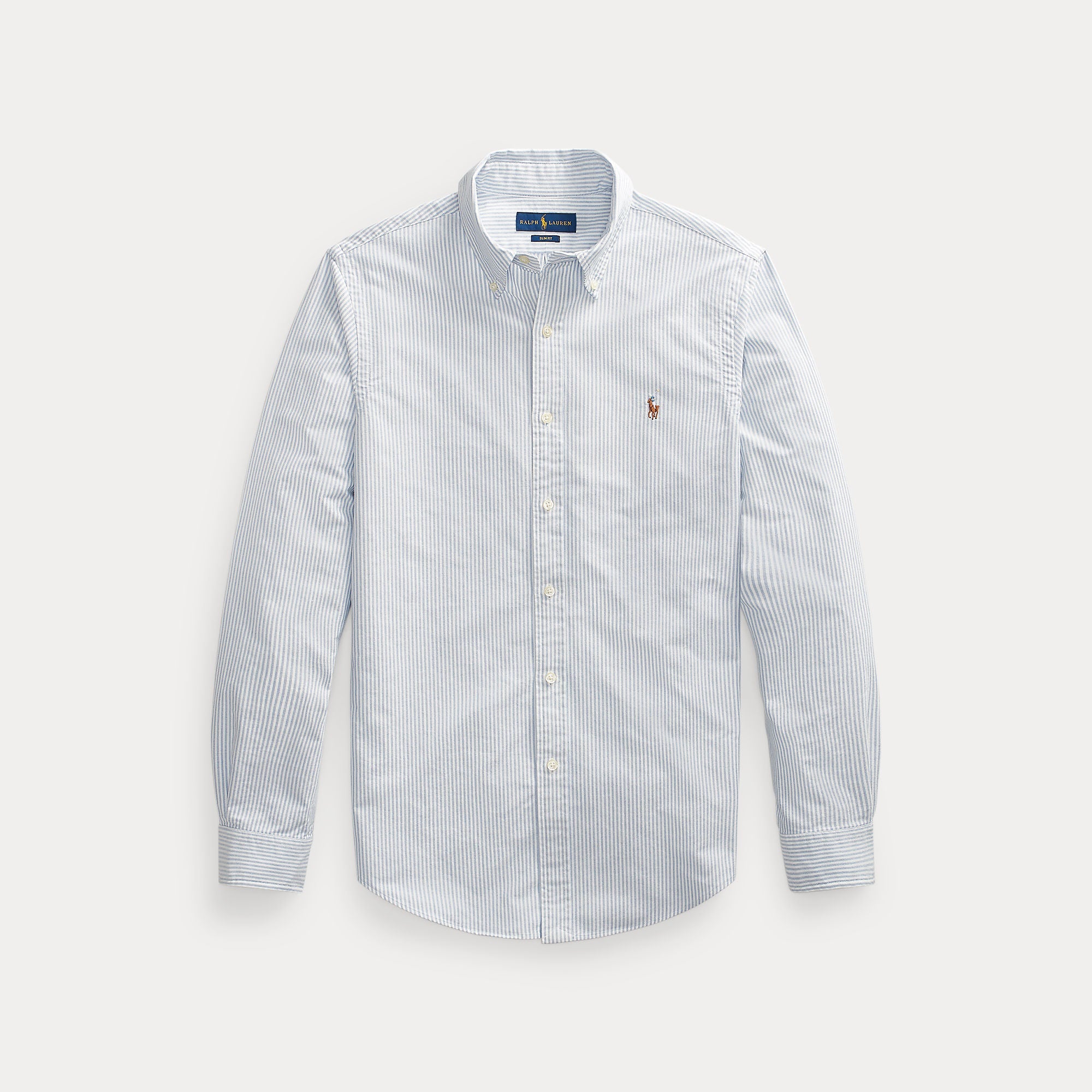 The oxford shirt made its debut very early on in Ralph Lauren's designs, and since then it has solidified its status as a pillar of the Polo look. Today, Mr. Lauren continues to create countless variations of his iconic shirt, including this striped version that is embroidered with our multicolored signature Pony.