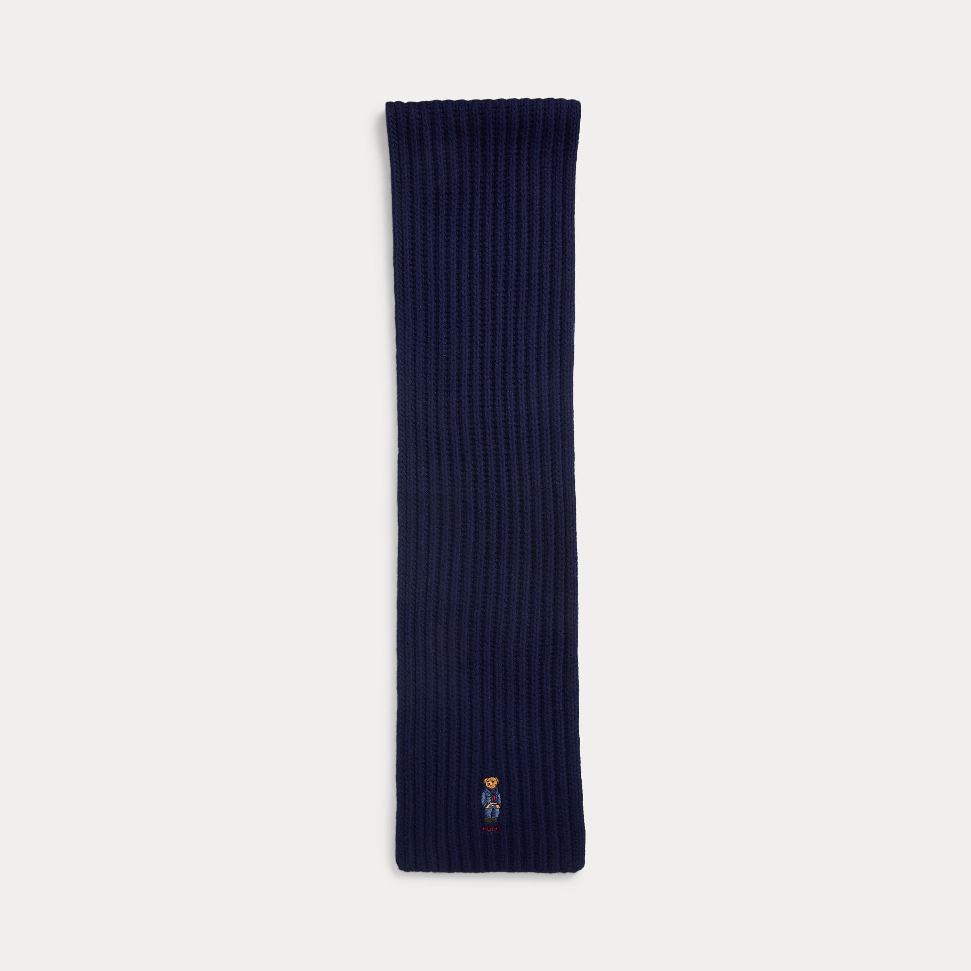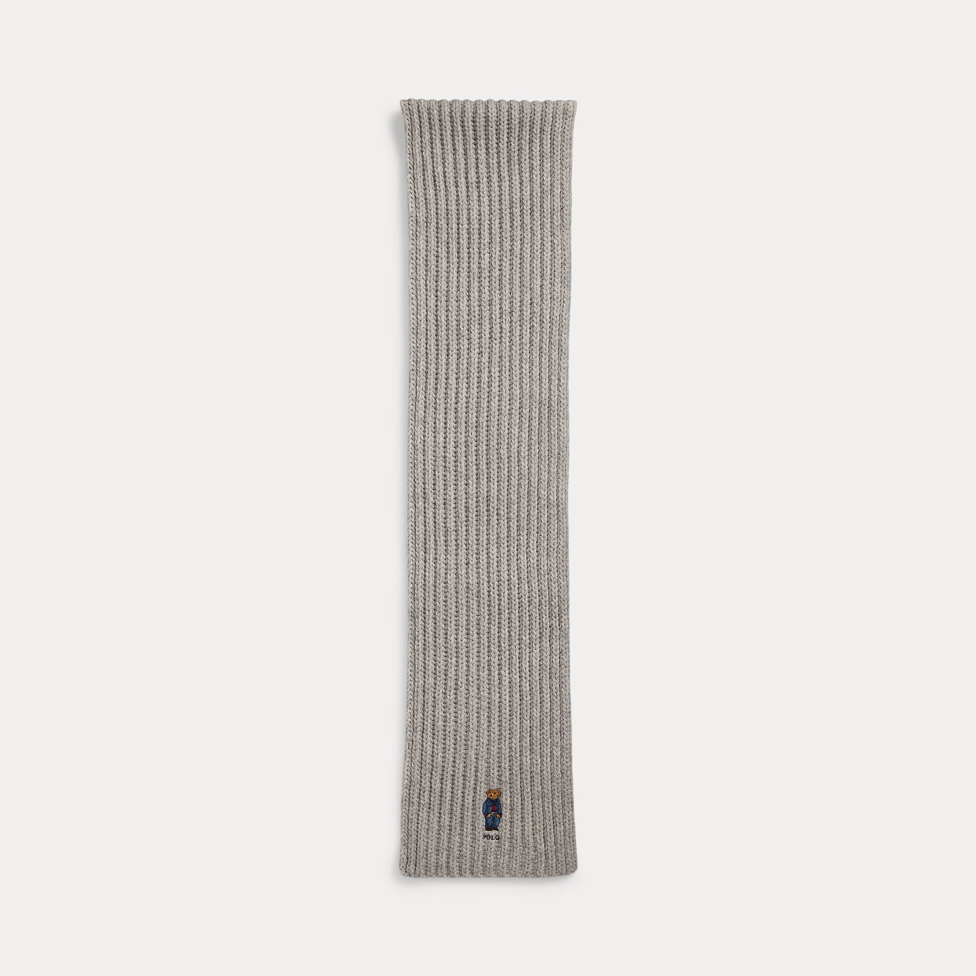 Featuring an allover rib-knit construction, this scarf showcases our iconic Polo Bear sporting a denim outfit with an “RL” turtleneck.