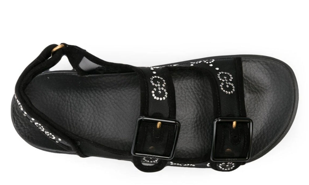 Gucci crystal-embellished monogram-pattern sandals "Black"