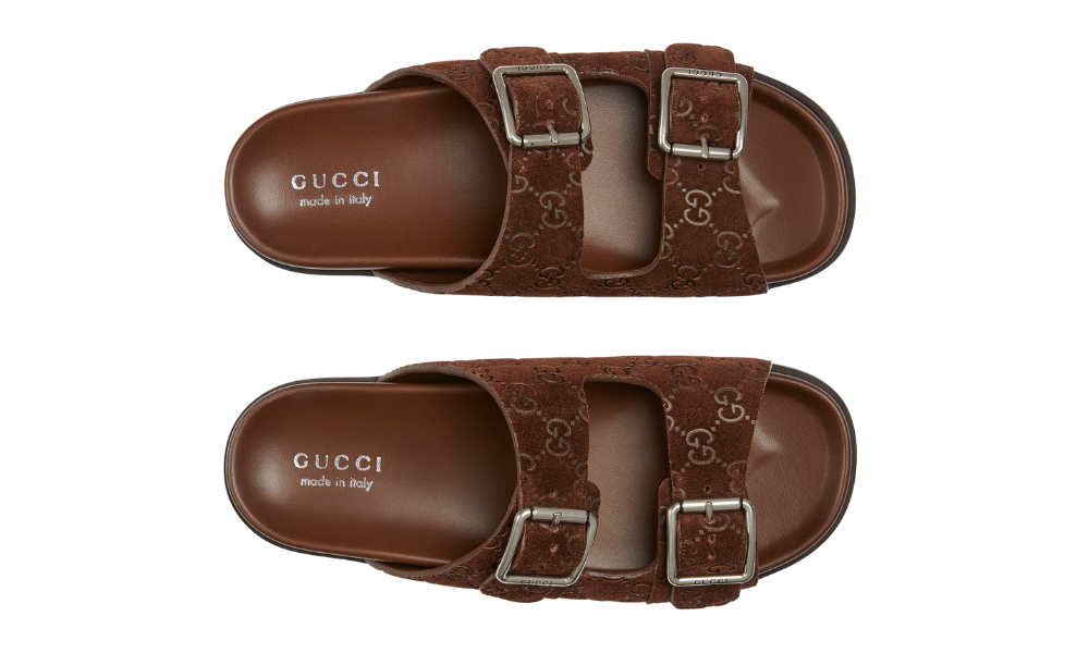 The GG logo originates from an archival rhombi design, and since the 1970s, it has become an established symbol of the House. Embossed GG suede adds a sophisticated touch to this pair of flat sandals.