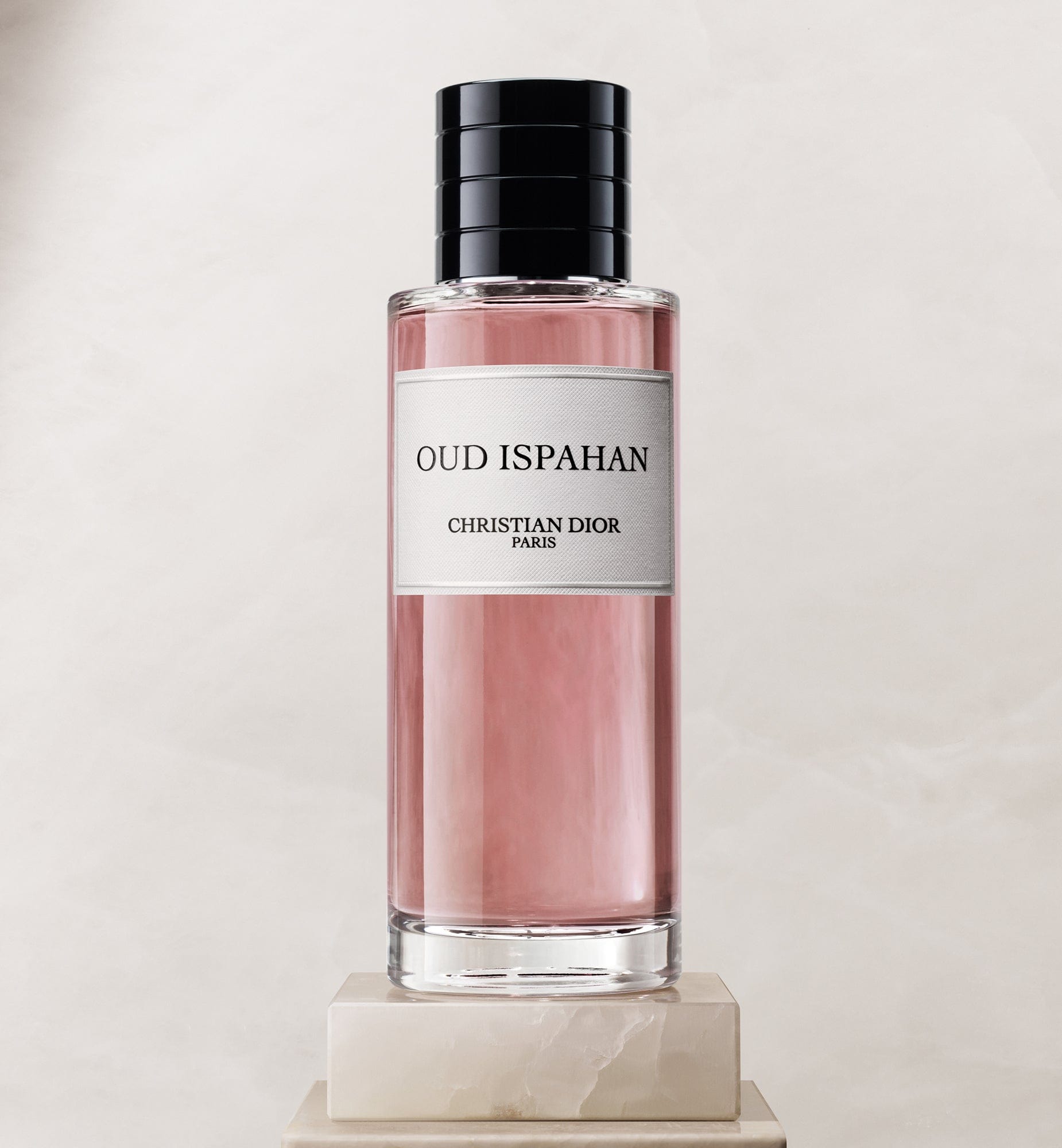 Oud Ispahan eau de parfum outlines the seductively close contact of an oud wood note and a sensual, plump Damascus rose.