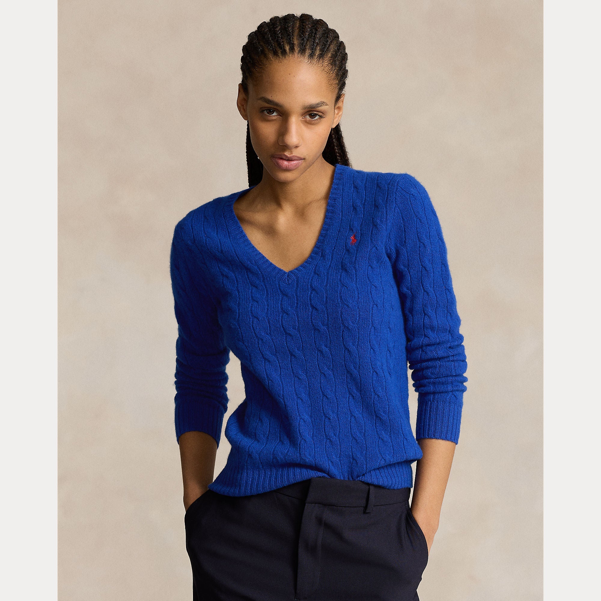 CABLE-KNIT WOOL-CASHMERE V-NECK SWEATER