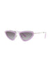 logo, metallic/plastic frame, basic solid colour, cat eye style