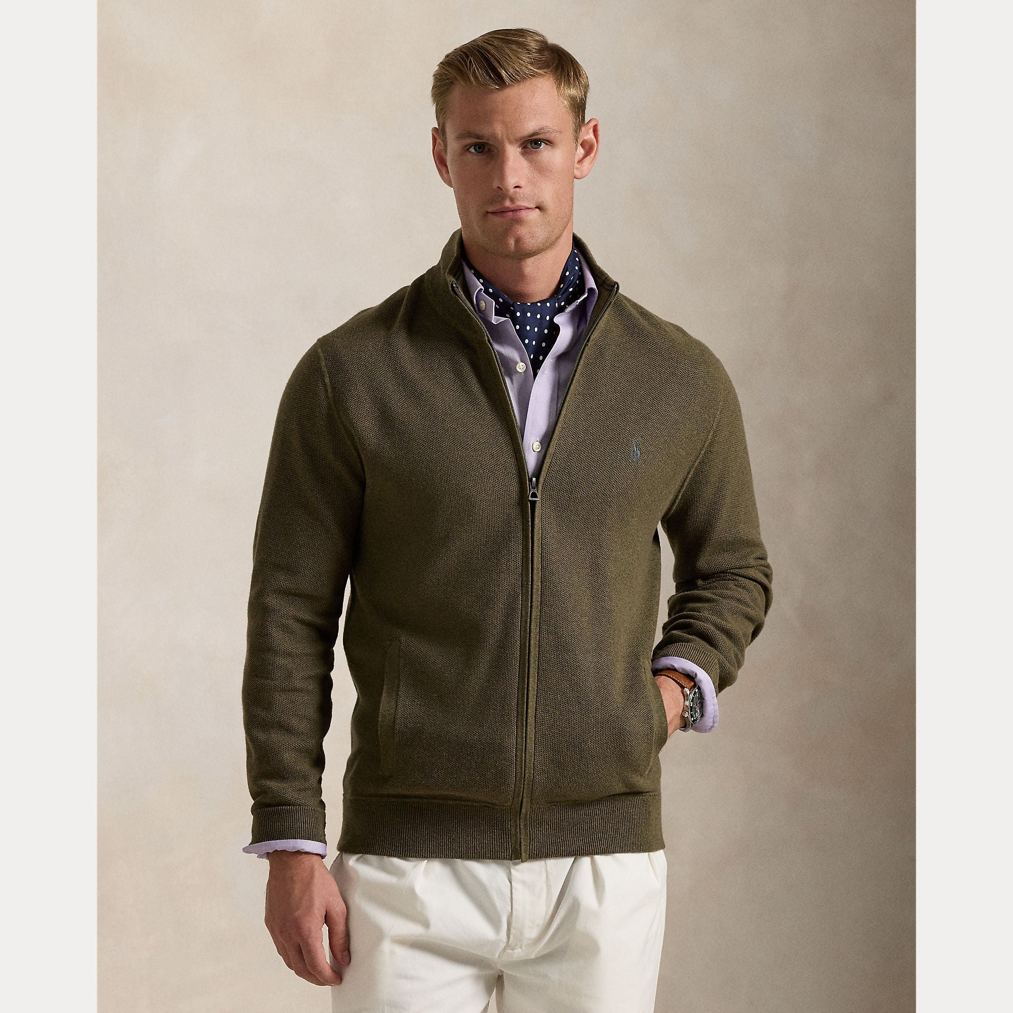 MESH-KNIT COTTON FULL-ZIP SWEATER