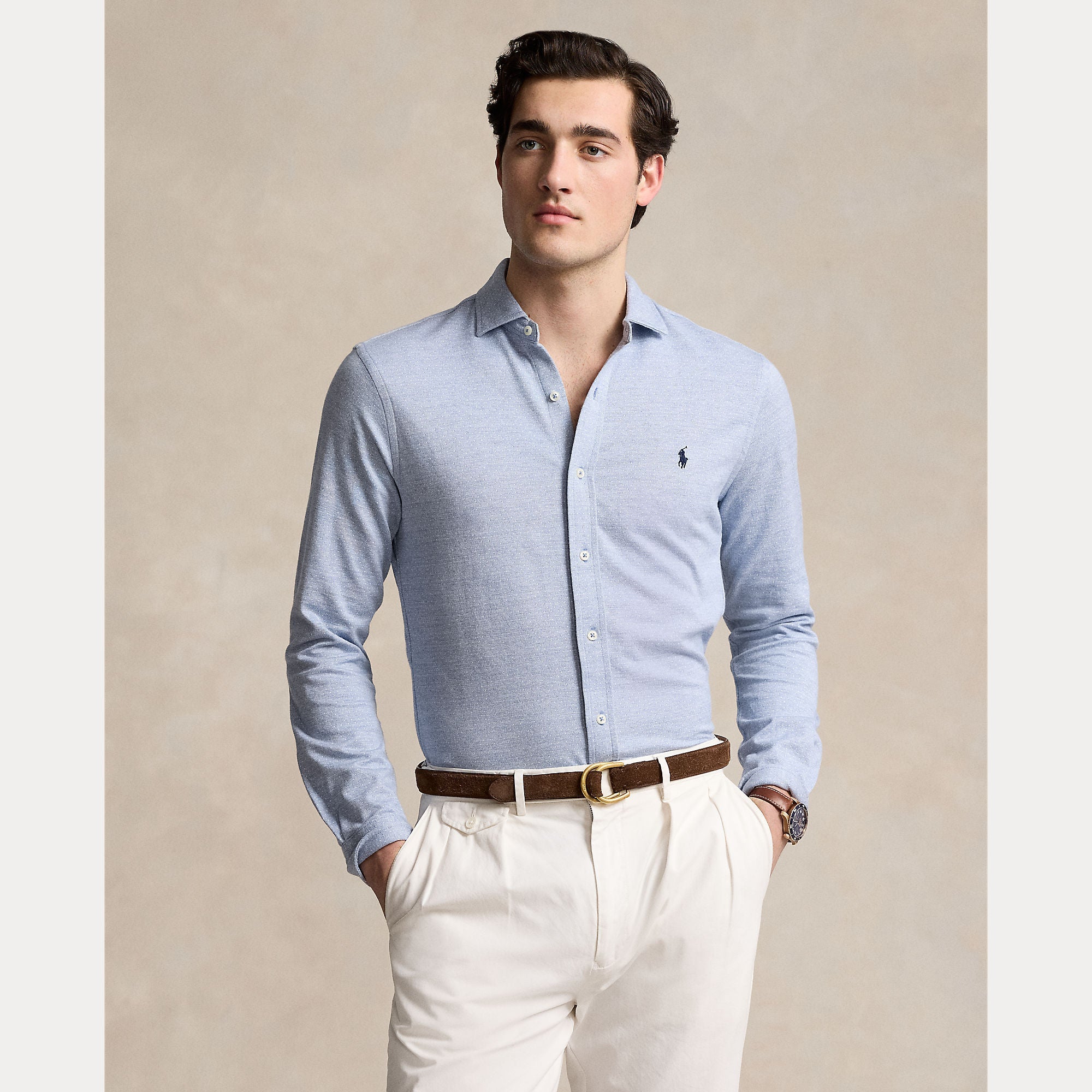 COTTON JERSEY V-NECK TEE - Cornflower blue / S - $89.00