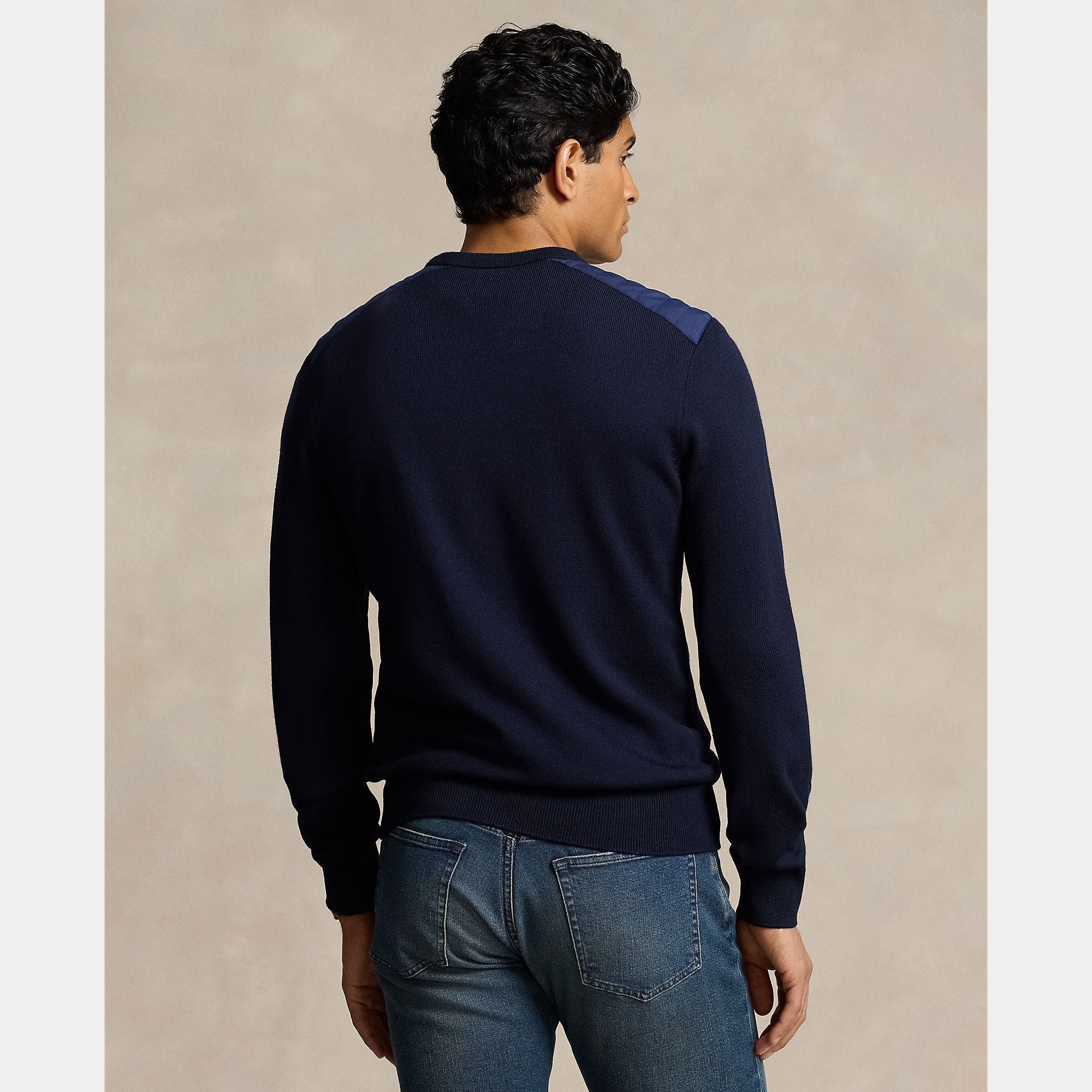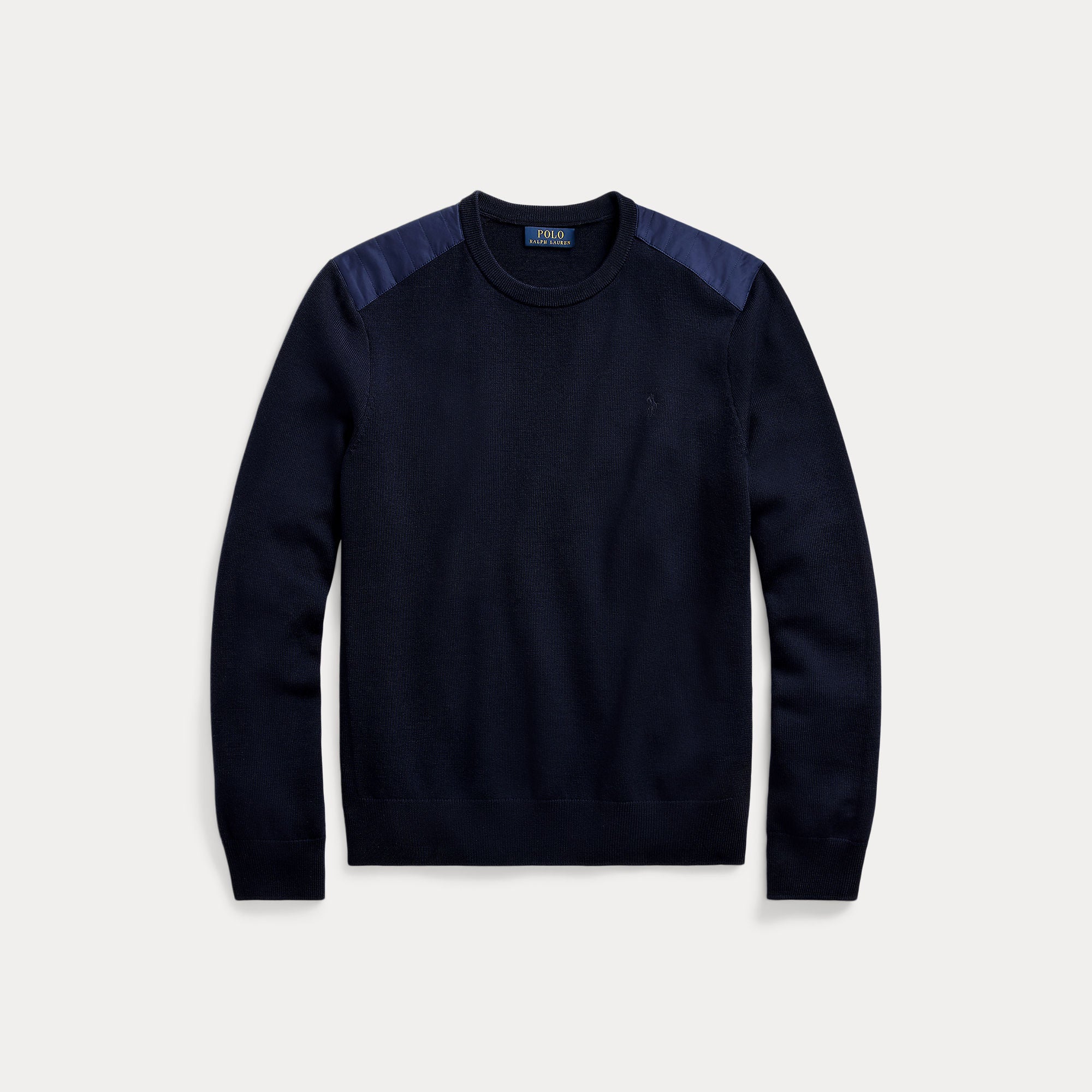 CONTRAST-PANEL WOOL CREWNECK SWEATER