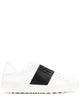 - White, pastel pink, leather, characteristic Rockstud detail, patchwork design, tongue with printed logo, round toe, front lace closure, logo-printed insole, and rubber sole.