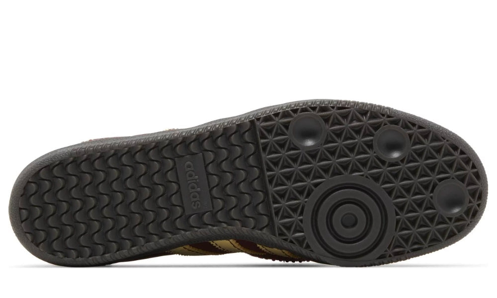The Wales Bonner x adidas Samba Nylon 'Fox Brown' delivers the British brand's modern take on a classic. The low-profile silhouette dons a burgundy nylon upper with a tonal forefoot overlay in hairy suede. Tan leather detailing appears on the signature three-stripes and back tab. Blue nylon lines the collar, providing a burst of contrasting color. 'Wales Bonner' is imprinted on the lateral heel, while dual branding adorns the sockliner and fold-over tongue. Underpinning the sneaker is a durable gum rubber cupsole.