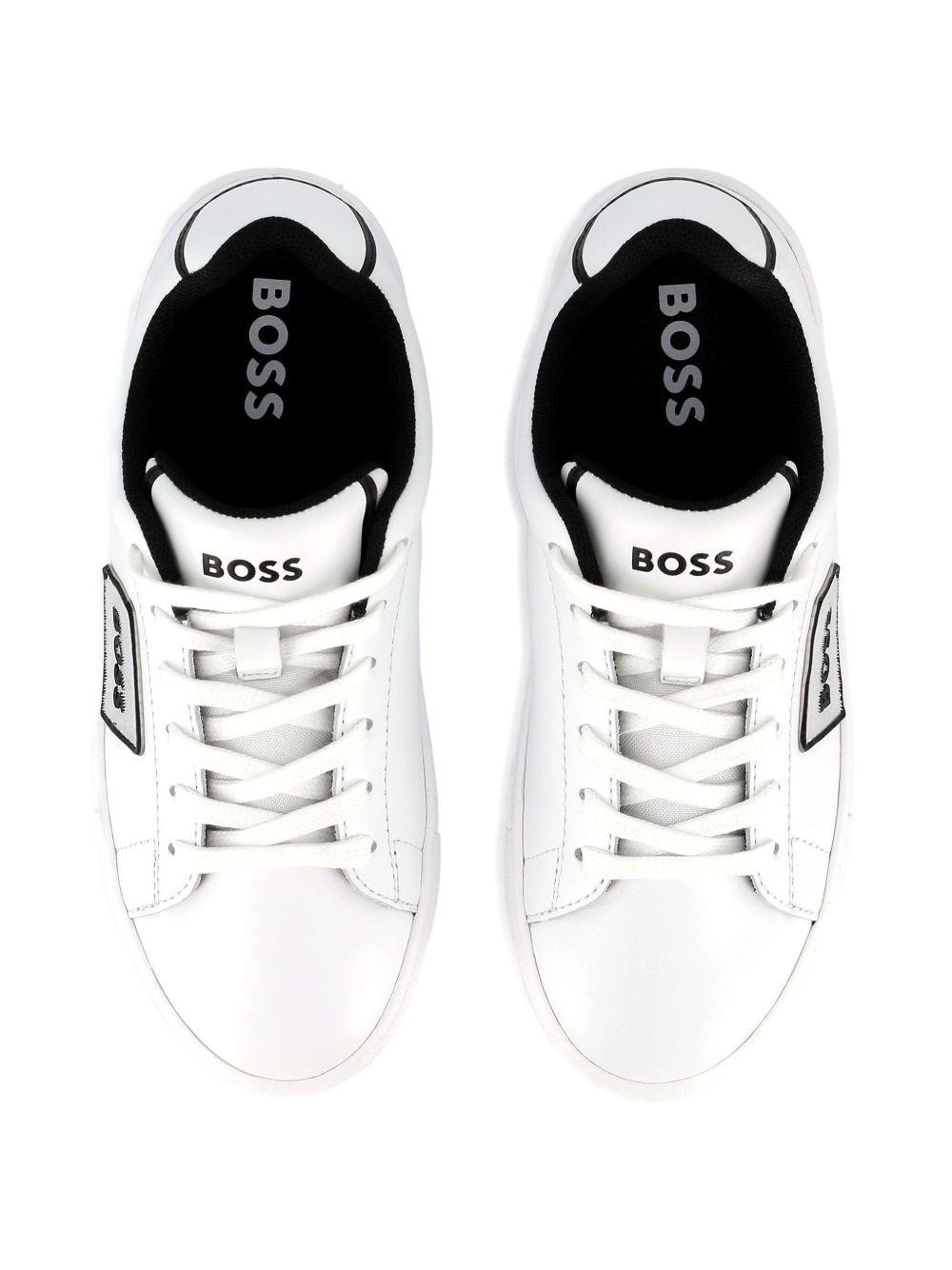 Sneakers per bambino BOSS Kids bianche con dettaglio con placca con logo