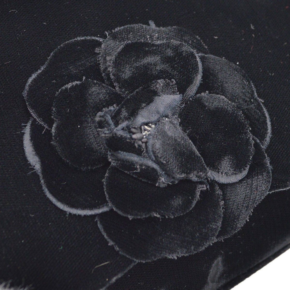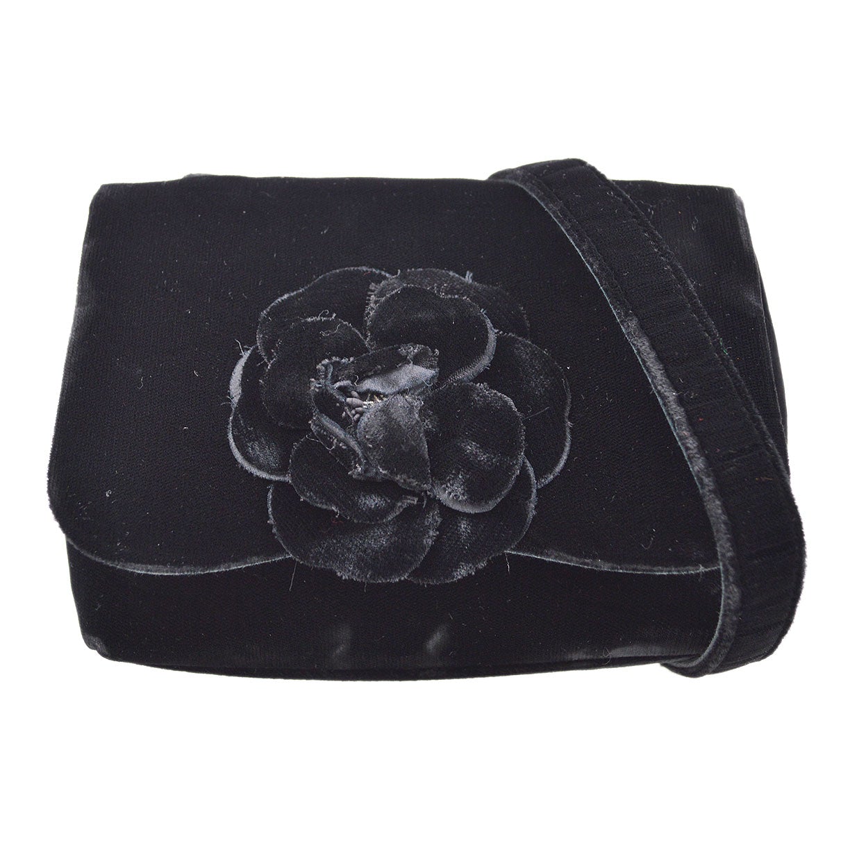CHANEL 1991-1994 Camellia Crossbody Bag Black Velvet