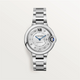 The Ballon Bleu de Cartier watch features an elegant rose gold case, signature Cartier crown set with a blue sapphire cabochon, and a refined alligator leather strap, blending classic luxury with timeless design.