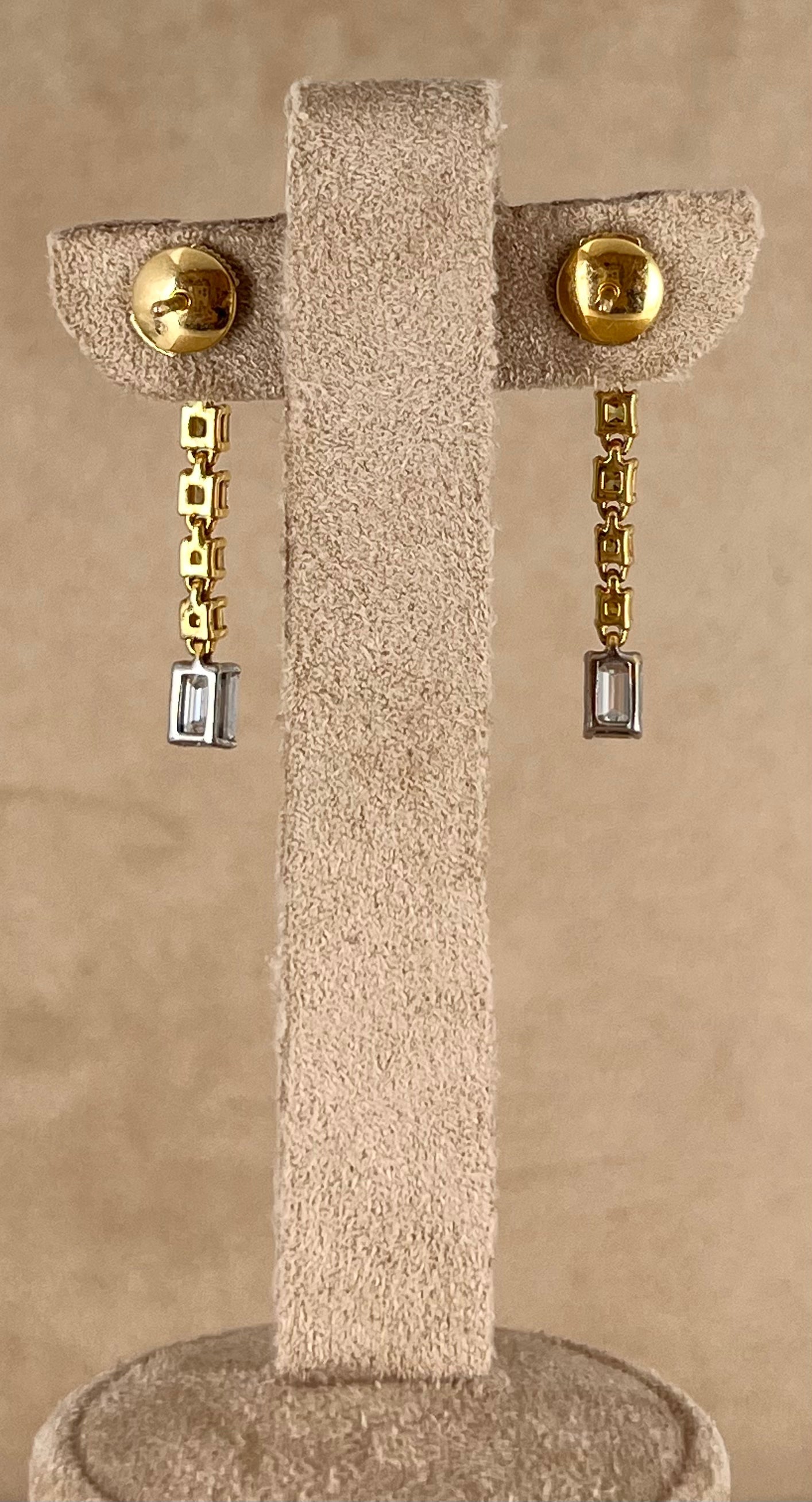 Diamonds: Emerald Cut F 0.60ct + 0.70ct fancy yellow greenish Natural