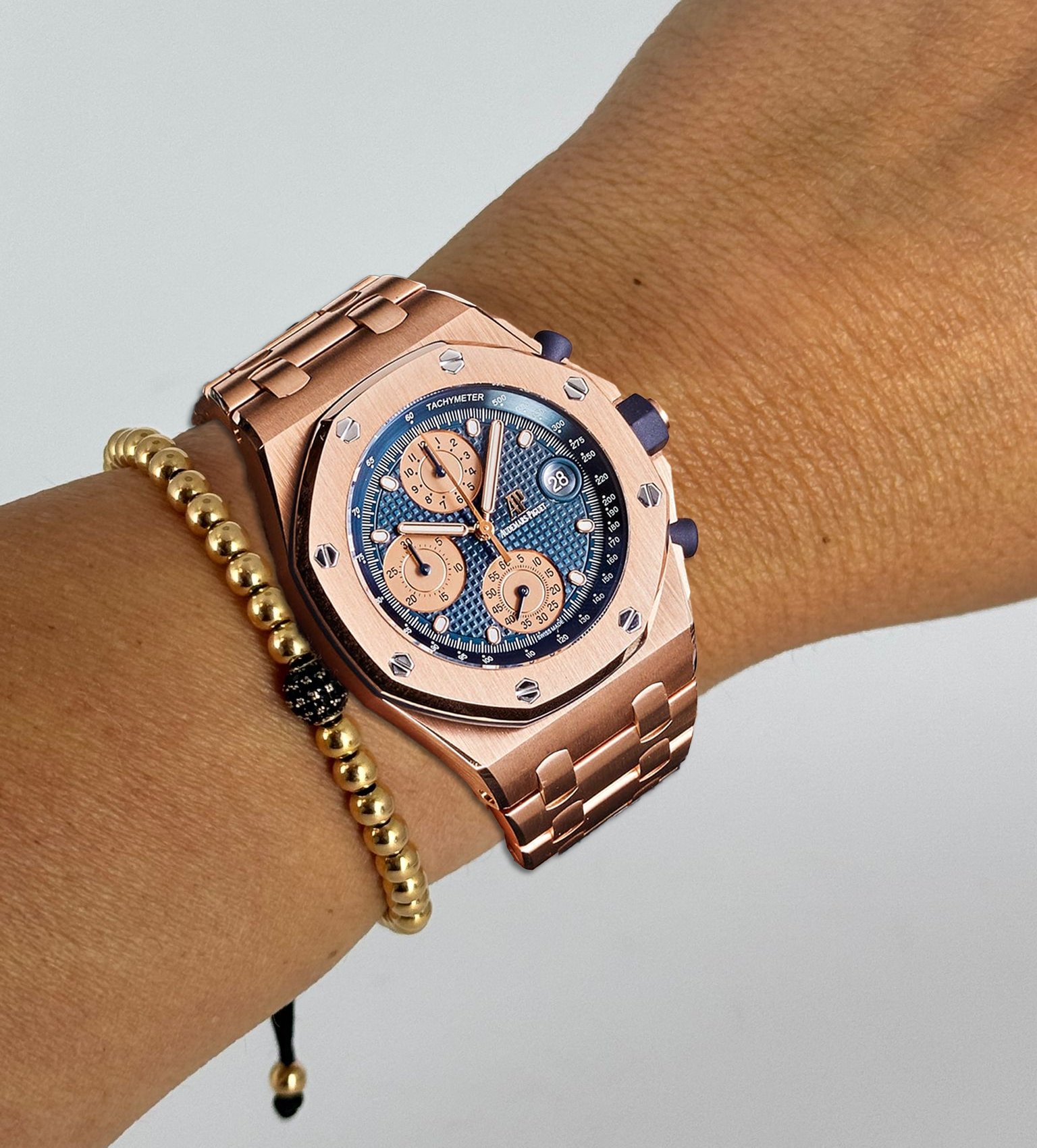 Flyback-Chronograph, Stunden, Minuten, kleine Sekunde und Datum.