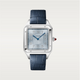 | The Santos de Cartier Skeleton combines iconic skeletonized Roman numeral bridges, interchangeable SmartLink bracelet and leather strap, yellow gold bezel, blued-steel hands, and artisan details for a sophisticated statement piece. | |