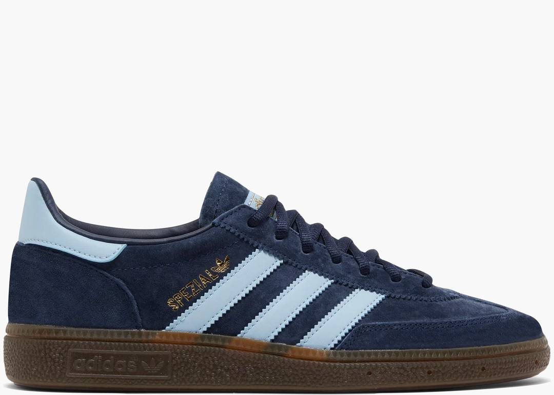 Adidas Handball Spezial Navy Gum - Realizzate per i migliori giocatori di pallamano nel 1979, queste storiche scarpe sono oggi uno dei modelli più amati dai collezionisti di sneaker. In questa versione, la morbida tomaia in suede e nubuck è abbinata alla confortevole suola in gomma naturale di ispirazione vintage. Altri dettagli includono il marchio adidas sulla linguetta, le 3 strisce del marchio sui lati, il logo del trifoglio 'Spezial' sul lato in lamina d'oro e una soletta OrthoLite con marchio. Questa scarpa ha una punta tonda e un sistema di chiusura con lacci con lacci blu navy che si abbinano al tema generale. Una suola in gomma gommata completa il look vintage.