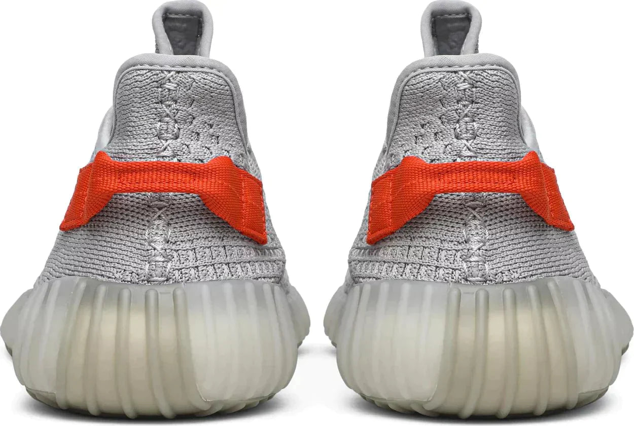 This Yeezy 350 V2 Tail Light is composed of a grey Primeknit upper with a translucent outer side stripe that reveals hints of orange toward the heel of the upper. A translucent Boost cushioned sole and grey interior completes the design. These sneakers released in February of 2020.