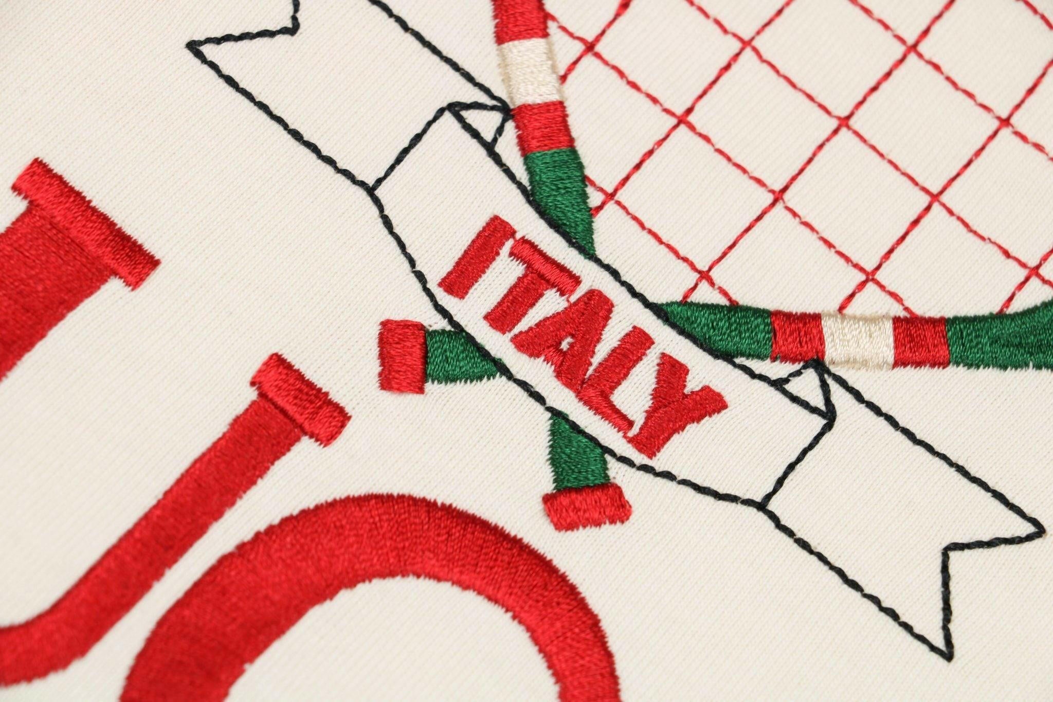 Stay cool and stylish all summer with the 62 22ss Embroidered 'Tennis Italy' Cream T-shirt Summer Collection. Crafted from luxurious cotton fabric, this versatile t-shirt features a bold embroidered 'Tennis Italy' logo for a bold statement piece. Experience comfort and style during the warm summer months with this unique and inspired t-shirt.