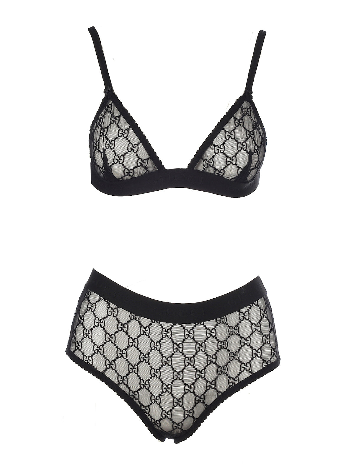 Gucci GG lingerie set. Featuring a sheer effect, monogram print, and adjustable straps. Lingerie and underwear should be tried on over your own garments.