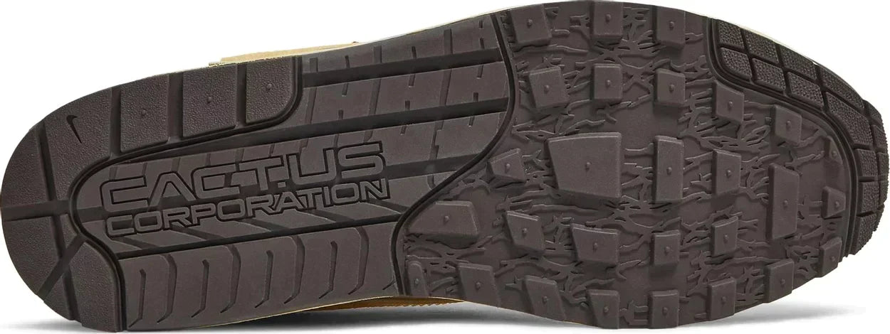 In collaboration with Travis Scott's record label Cactus Jack, the Nike Air Max 1 Travis Scott Cactus Jack Brown draws inspiration from the Nike ACG Pocket Knife hiking shoe. It features a layered mesh upper with tonal-brown Durabuck overlays and reversed Swoosh logos. A drawstring Gillie lacing system nods to common features on trail runners. At the base, a yellowed sole with a cloudy Air unit completes the design.