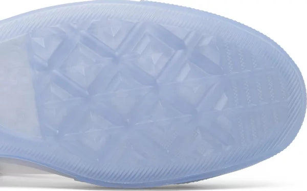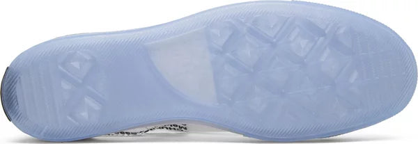 PLEASE NOTE: US and UK sizing is the same for Converse All-Stars. The Converse Chuck Taylor All-Star Hi also made it way into 'The 10' Collection. Made in collaboration with Virgil Abloh's Off-White and Nike, this series brought together all three brands for an exciting new rendition of the classic Converse Chuck Taylor. A part of the 'Ghosting' Series, this pair comes in a white, cone and ice blue colorway. Sporting a reconstructed translucent upper, featuring a semi-revealing material to tie-in with the theme. Various materials are found throughout, as well as a red zip-tie, black branding and an icy blue translucent sole. Their release date was November 1st, 2017 where they were available alongside the rest of the Off-White x Nike 'Ghosting' Collection. They were available in men's sizing at select retailers worldwide. If you're a fan of the Converse Chuck Taylor All-Star and Off-White, this is another must-have pair.