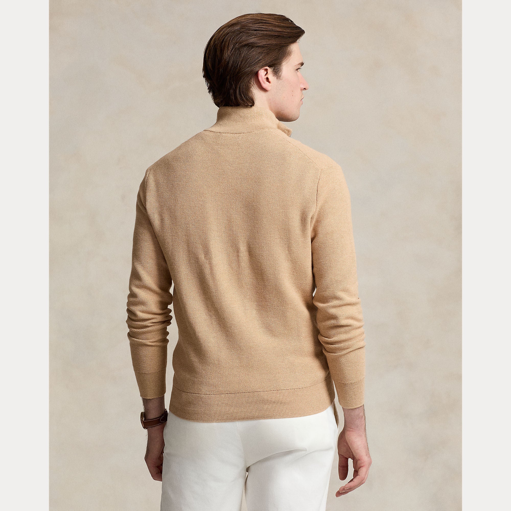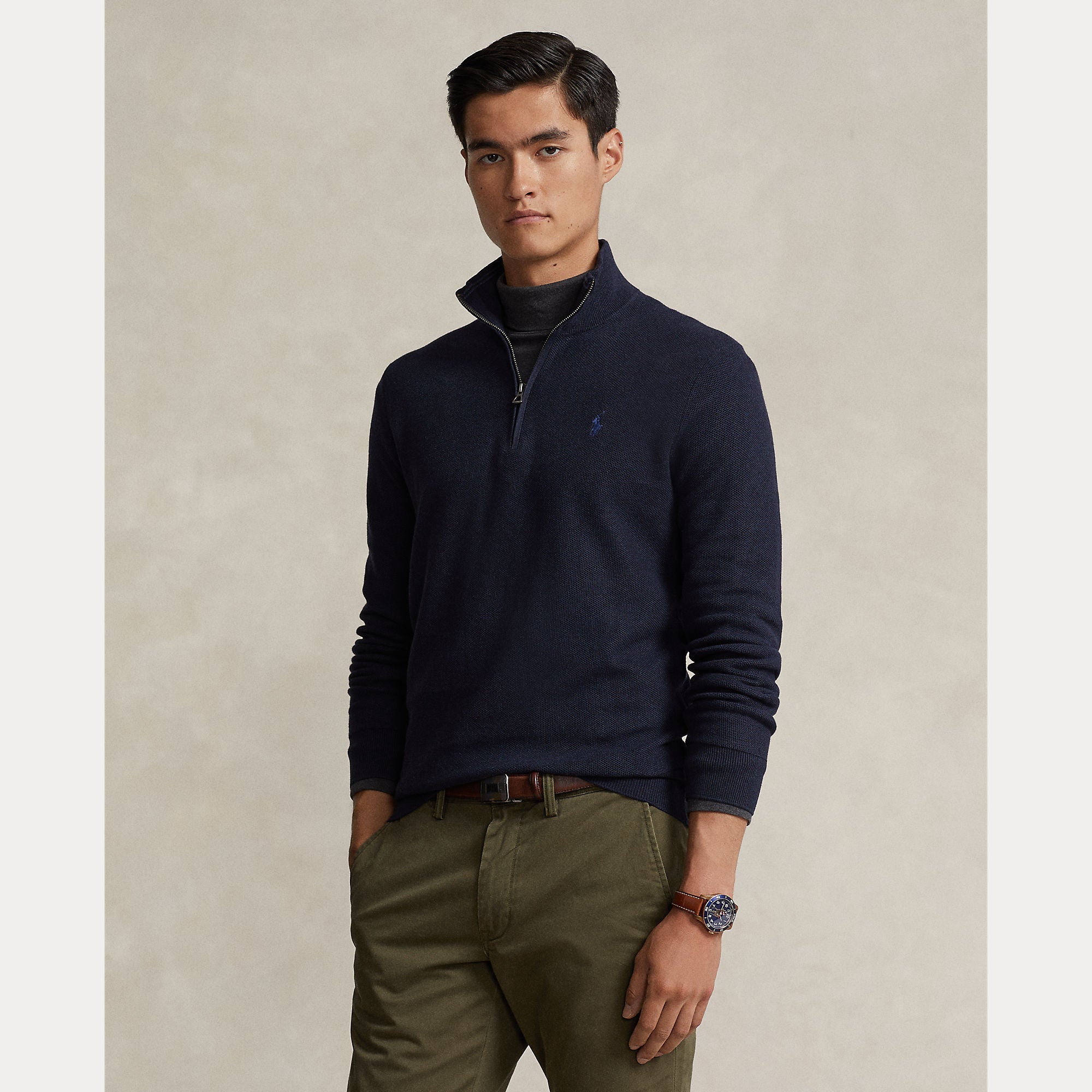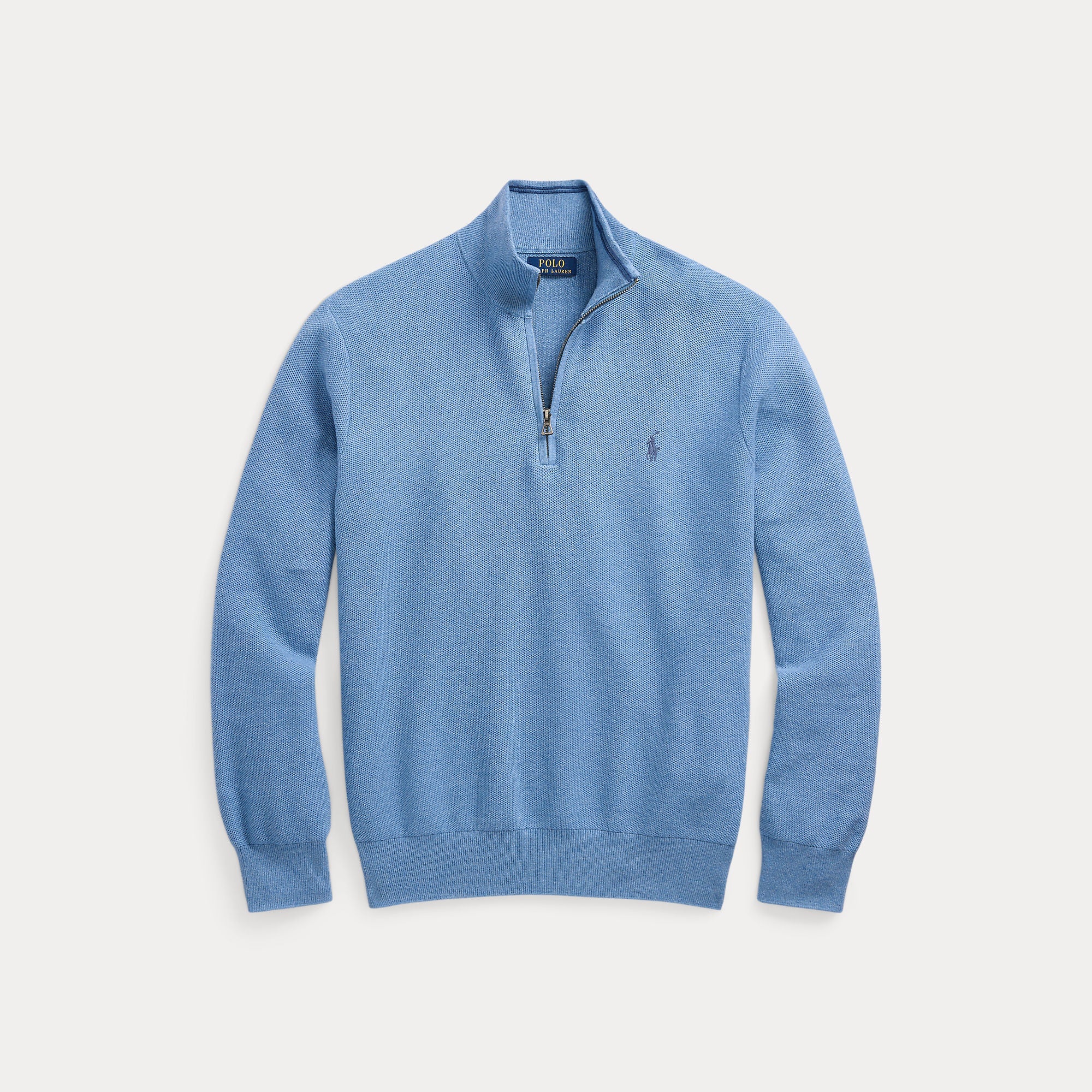 MESH-KNIT COTTON QUARTER-ZIP SWEATER