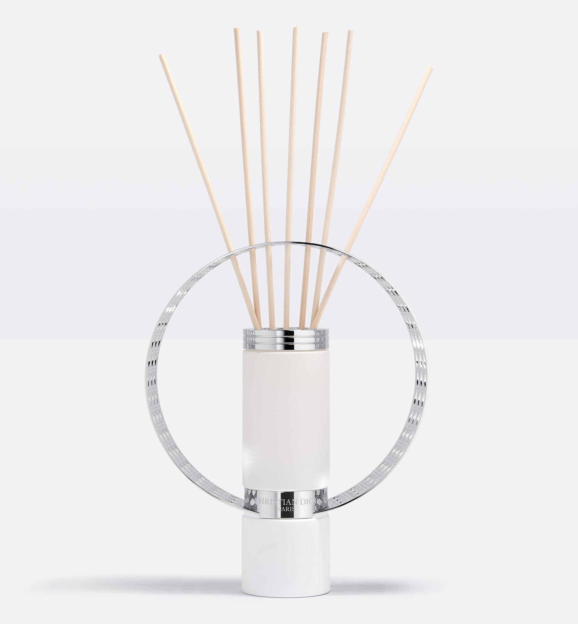 The spectacular, lightweight metal wheel that adorns Bouquet Privé is inspired by cannage, the style of weaving that has become a signature of the House of Dior. Bouquet Privé includes a white lacquered glass refill, topped with a silver ring signed “Christian Dior Paris”. Timeless and unique at Dior, this design echoes the refined aesthetics of La Collection Privée Christian Dior fragrance bottles.