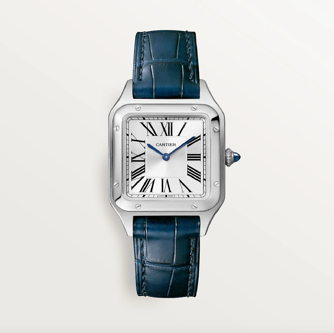 Cartier Santos-Dumont Small 38mm Stainless Steel Quartz Blue Alligator Strap