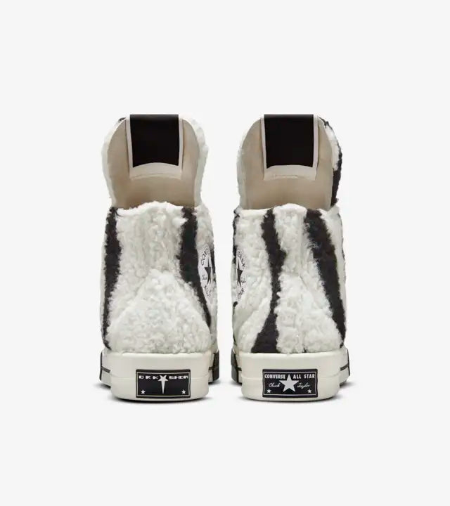 Break from convention with a bold new edition of the TURBODRK Chuck 70, created by Rick Owens. The subversive design both celebrates and distorts the lines of our most iconic silhouette—stretching the possibilities with an elongated tongue, adding a zebra-inspired jacquard finish and applying the collaboration’s signature square toe. It’s the bold reinvention of a street classic. And a rebellion against the ubiquitous. Rick Owens crafts a Chuck 70 unlike any other.