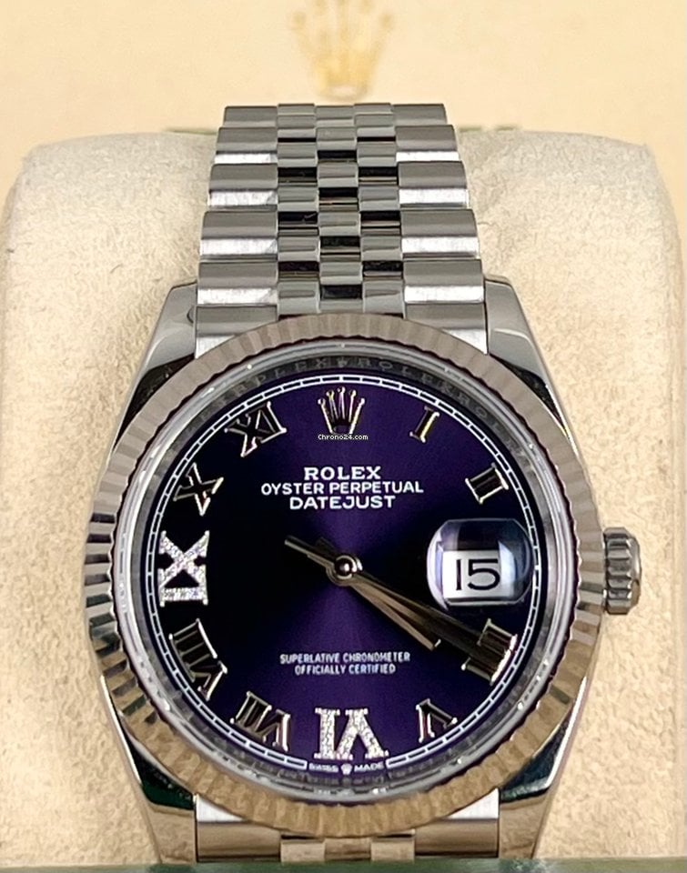 Datejust 36 Aubergine Diamonds Dial 18K White Gold Bezel