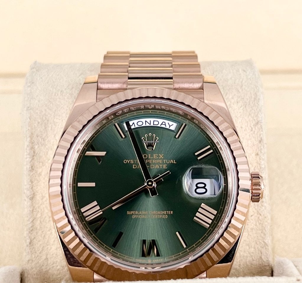 Day-Date 40 Rose Gold 18K 2018 Green Olive dial Mint condition unpolished full set