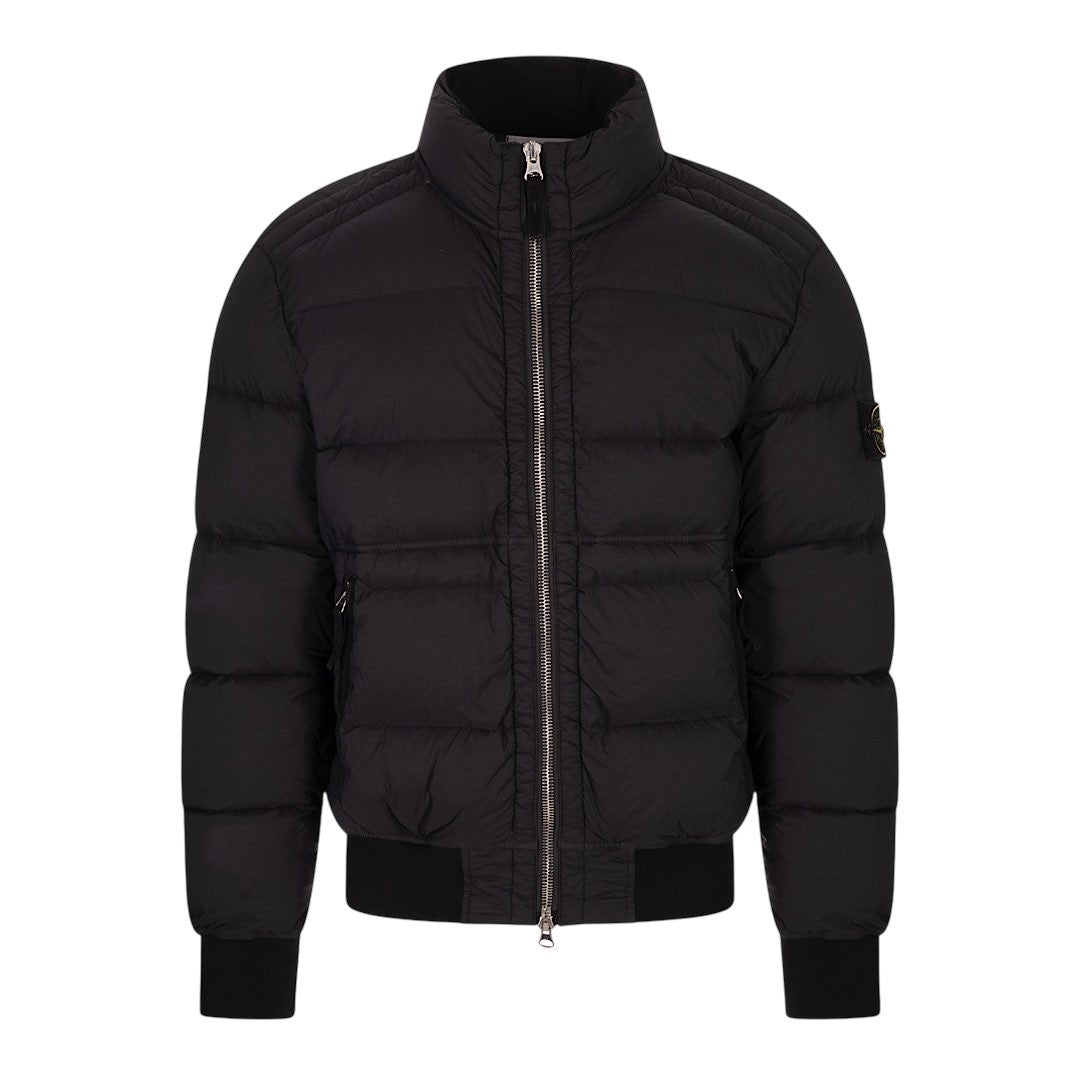 GIACCA BOMBER STONE ISLAND REALIZZATA IN INYLON IMBOTTITO TRAPUNTATO E CARATTERIZZATA DA COLLO ALTO, MANICHE LUNGHE, TASCHE OBLIQUE CON ZIP E POLSINI A COSTE. CHIUSURA FRONTALE CO ZIP A DOPPIO CURSORE. INCONICO BADGE STONE ISLAND SULLA MANICA.