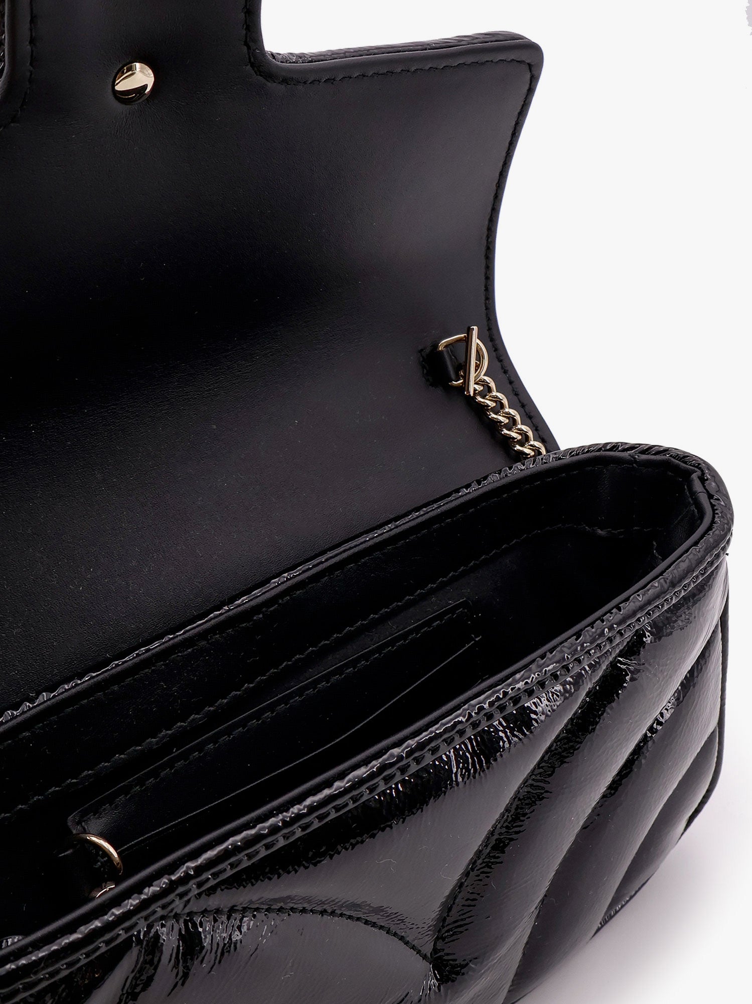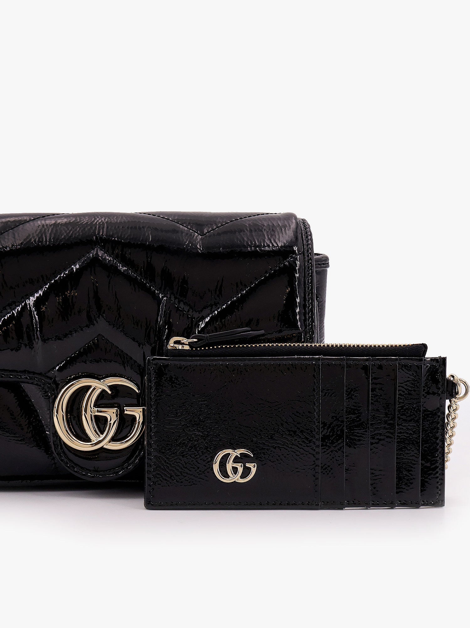 GG Marmont patent leather shoulder bag with frontal GG logo