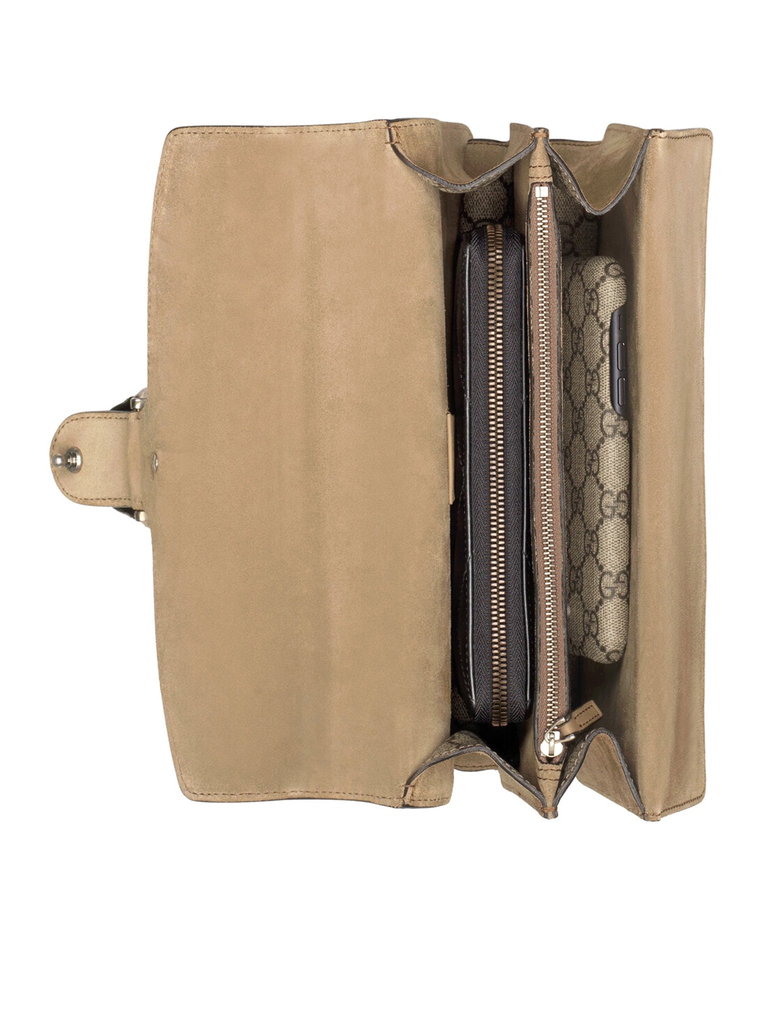- Beige/ebony GG Supreme fabric, environmentally friendly material, with taupe suede detail