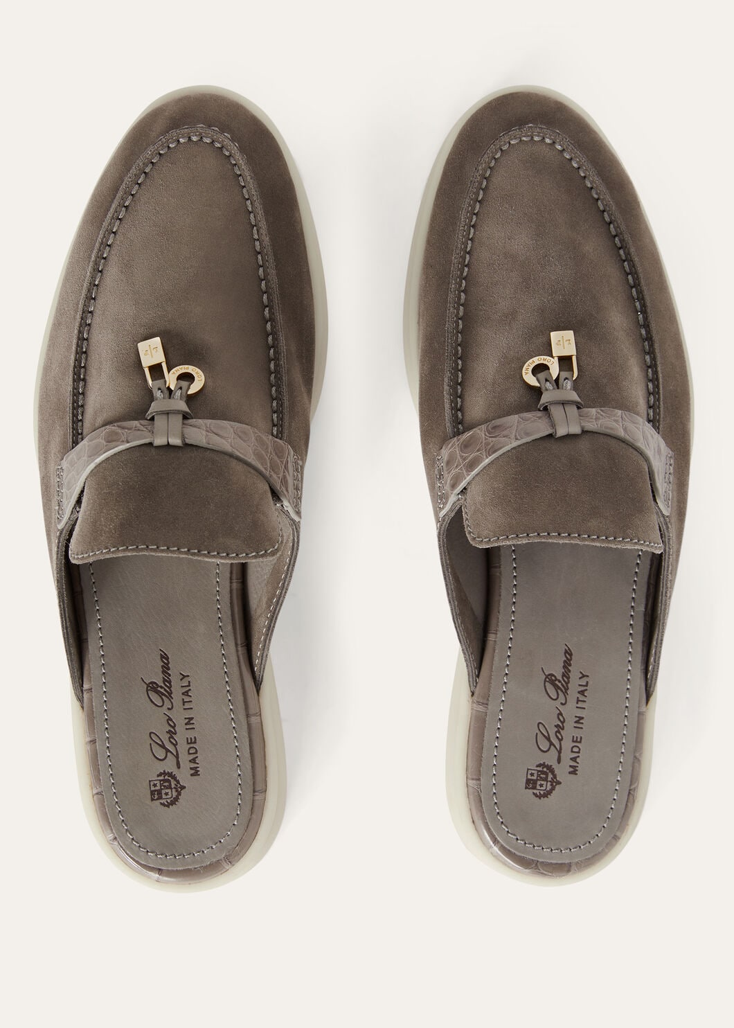 Il design rilassato e informale è arricchito da una suola in gomma con iconici gommini logati LP, che assicura flessibilità e grip su diverse superfici. Il dettaglio distintivo è il tallone ripiegabile in stile sabot, che permette di indossarli anche come slip-on per un comfort ancora maggiore.