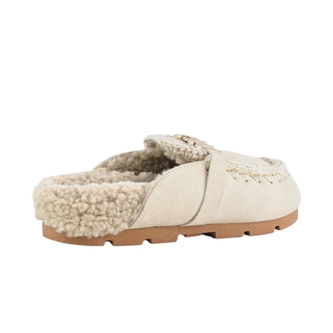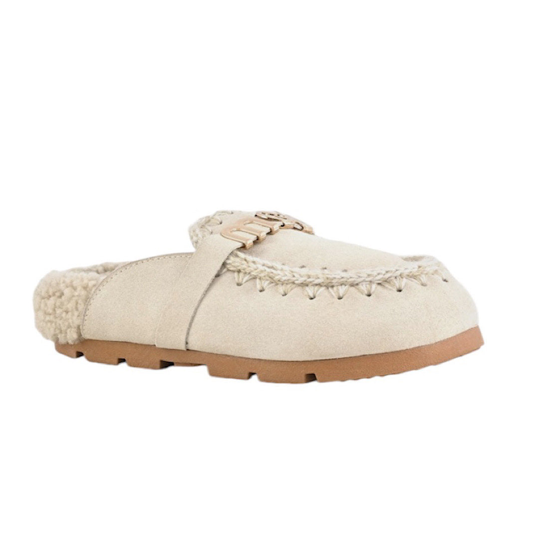 Placca con logo, orlo a treccia, design senza aperture, fodera in Shearling e suola piatta in gomma. Materiale: montone