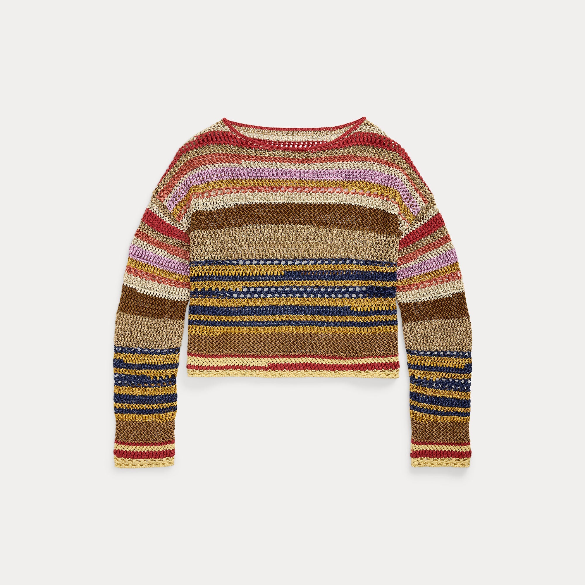 STRIPED LINEN-COTTON CROCHETED SWEATER