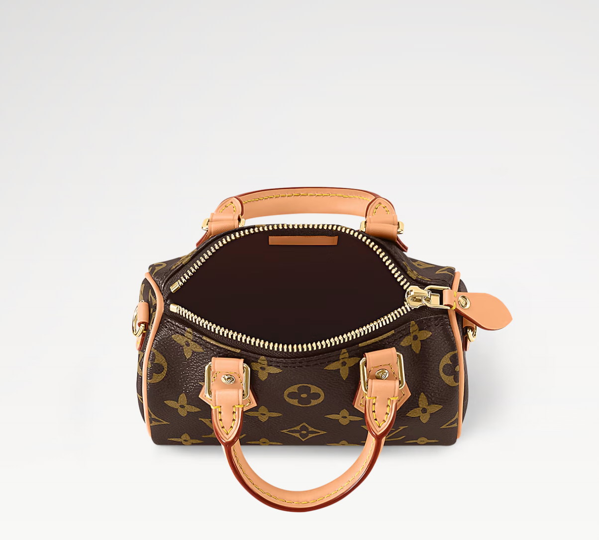 La Speedy Nano rivisitata in tela Monogram è la perfetta versione in miniatura dell'iconica Speedy di Louis Vuitton e il modo ideale per trasportare gli oggetti essenziali. Questo design splendidamente realizzato è completato da pelle di vacchetta naturale invecchiata e hardware color oro. Oltre ai suoi due manici, ha una tracolla rimovibile e regolabile per diverse opzioni di trasporto.
